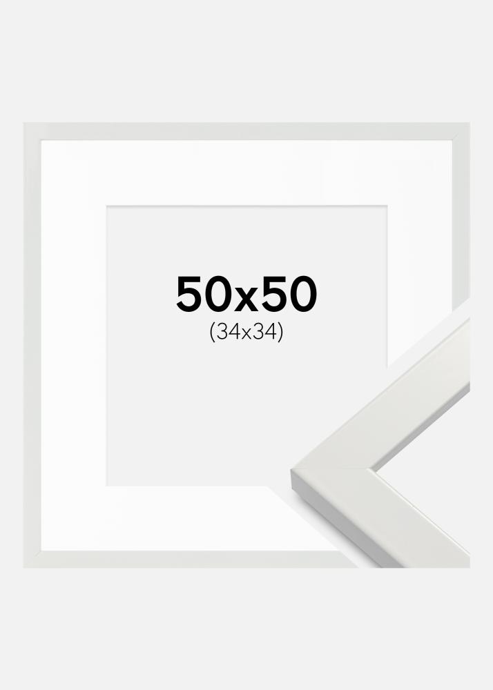 Frame White Wood Glossy 50x50 cm - Picture Mount White 35x35 cm