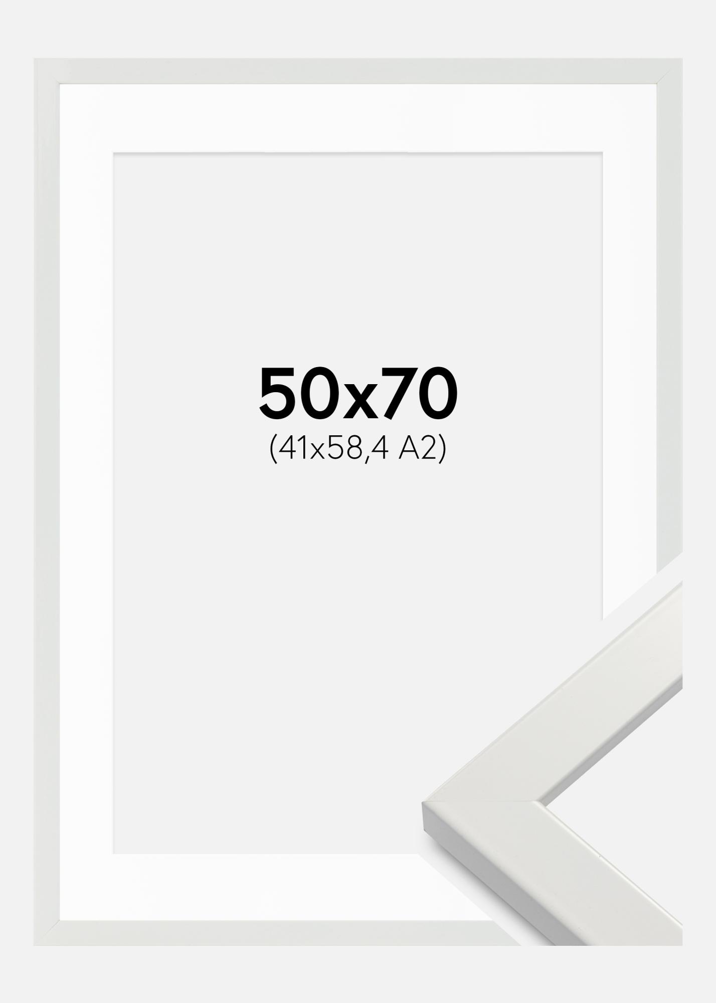 Frame White Wood Glossy 50x70 cm - Picture Mount White 42x59.4 cm (A2)