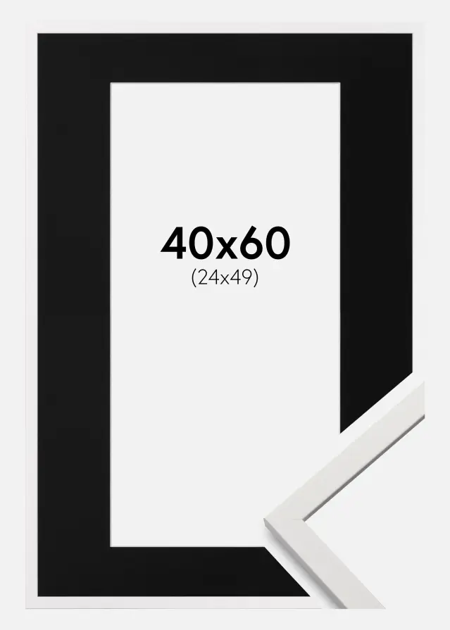 Frame White Wood 30x70 cm - Picture Mount White 20x60 cm