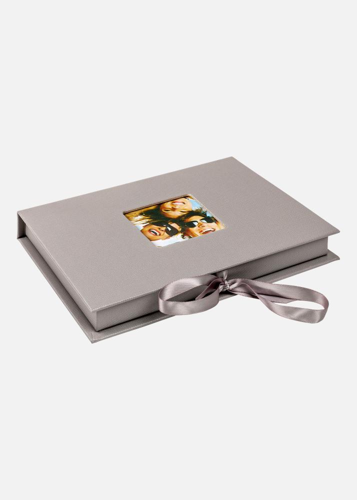 This elegant gift box in gray is designed to store and protect up to 70 photographs in the size of 13x18 cm. With its compact outer dimensions of 15x20x3 cm, it is both practical and stylish, making it ideal for preserving your memories or giving as a personal gift.
