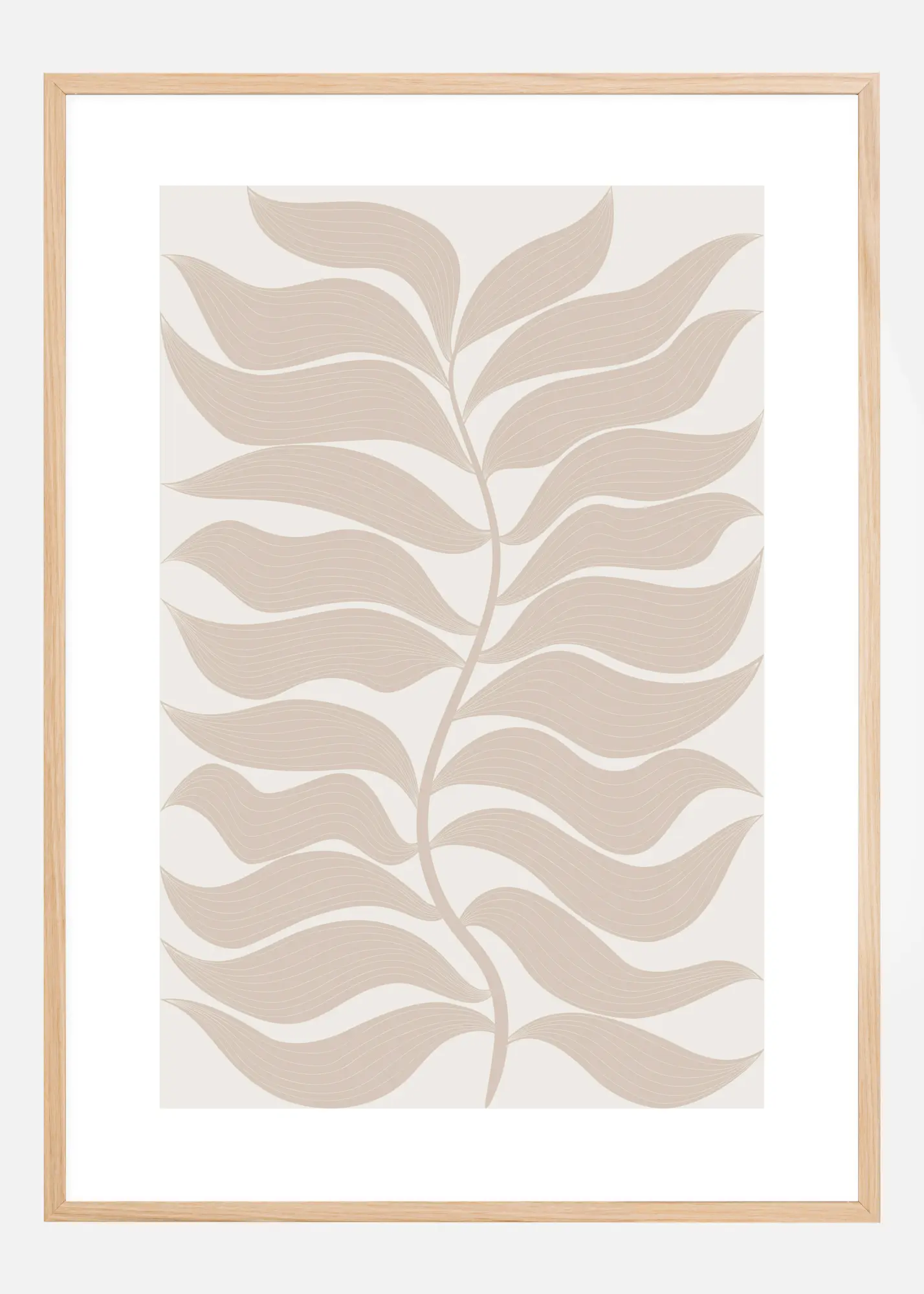 A botanical poster of a leaf. This delicate painting portrays a soft, gentle image of eleven leaves on each side of the main stem. Set on a white background, this is the perfect print for any nature lover or anyone interested in leaves.