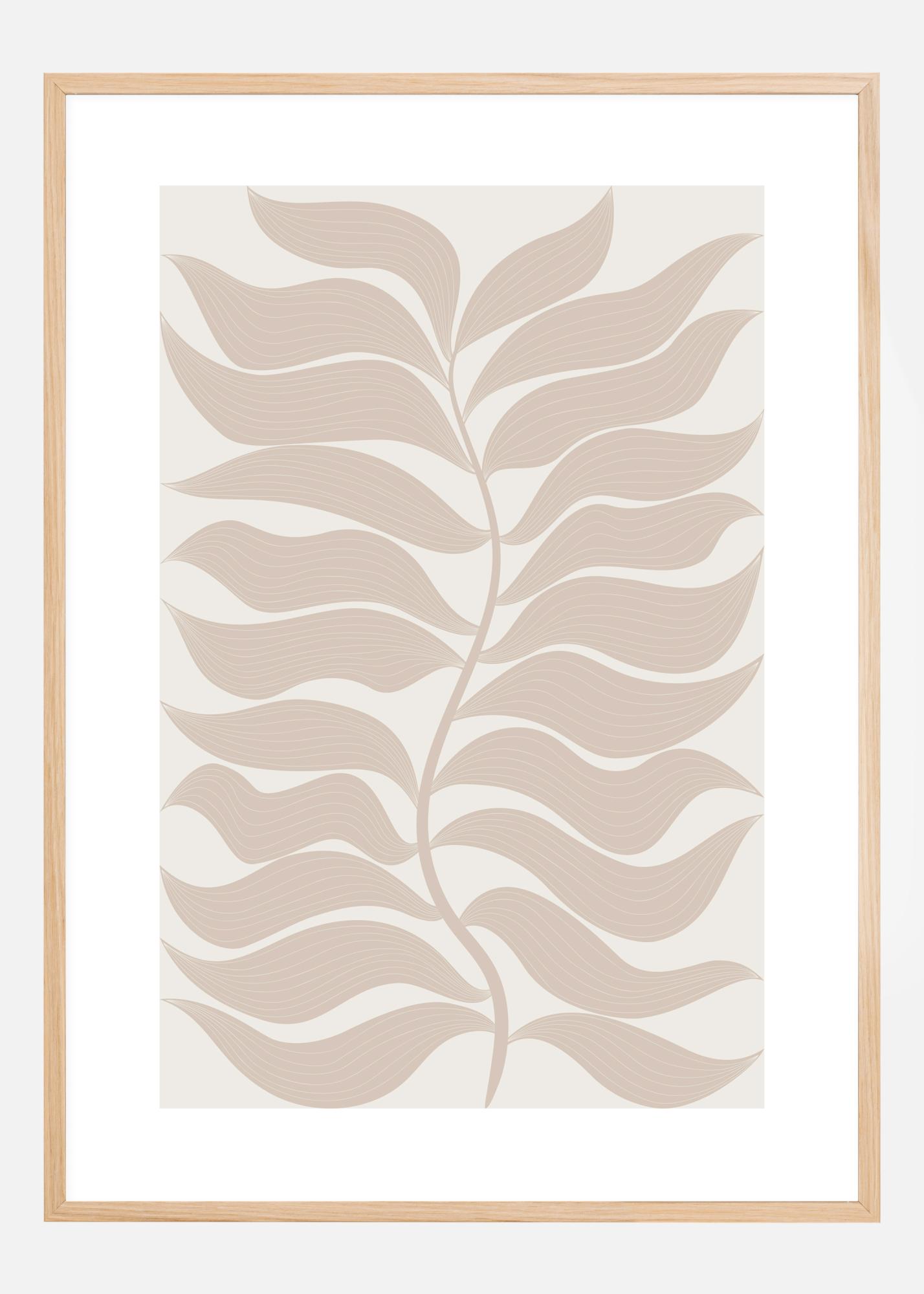 A botanical poster of a leaf. This delicate painting portrays a soft, gentle image of eleven leaves on each side of the main stem. Set on a white background, this is the perfect print for any nature lover or anyone interested in leaves.
