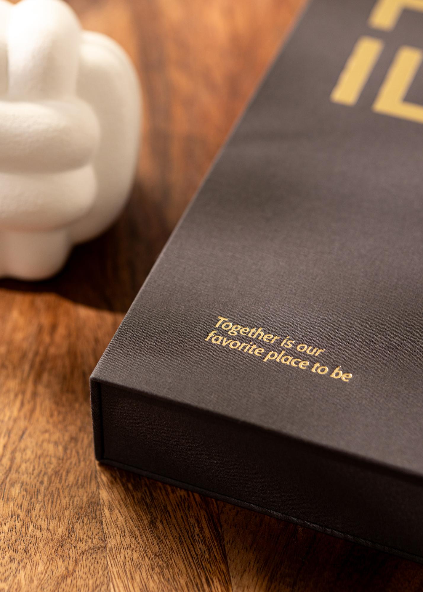 Discover KAILA FAMILY Black - an elegant and stylish photo album designed to function as a beautiful Coffee Table Book. With its beige covers and black pages, this album becomes a stylish interior detail in your home, while preserving your memories in a tasteful way.