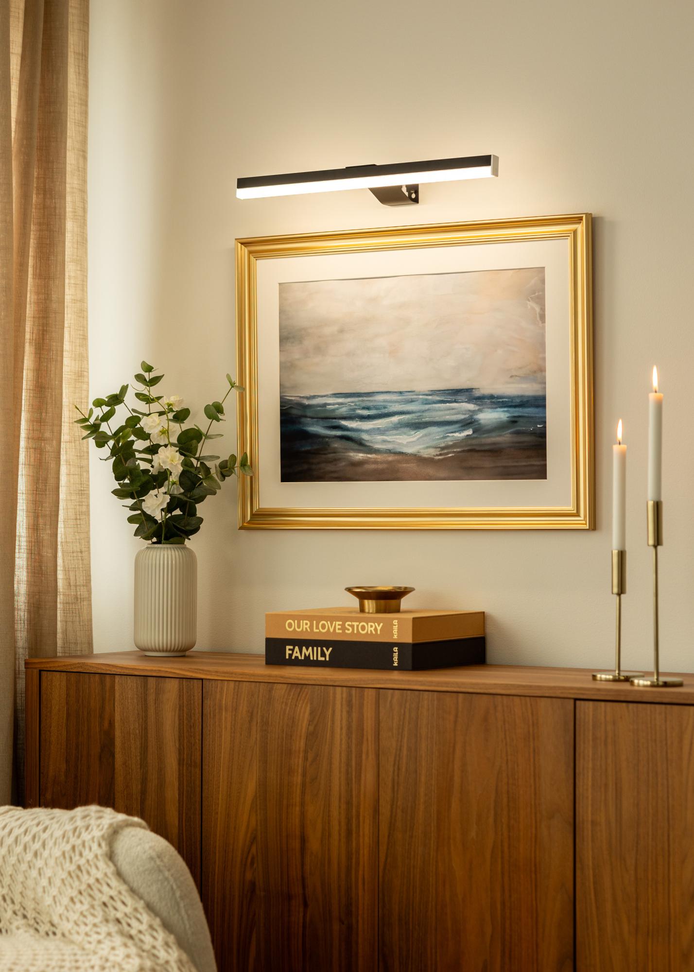 This battery-powered picture lighting offers a discreet and stylish solution for illuminating your artworks without worrying about cords. With its cordless design, you can easily mount the lamp anywhere in your home, making it a flexible option for highlighting your paintings or photographs. The lamp's depth is 15 cm, providing a good distance from the wall to create even lighting over pictures with a maximum width of up to 80 cm.
