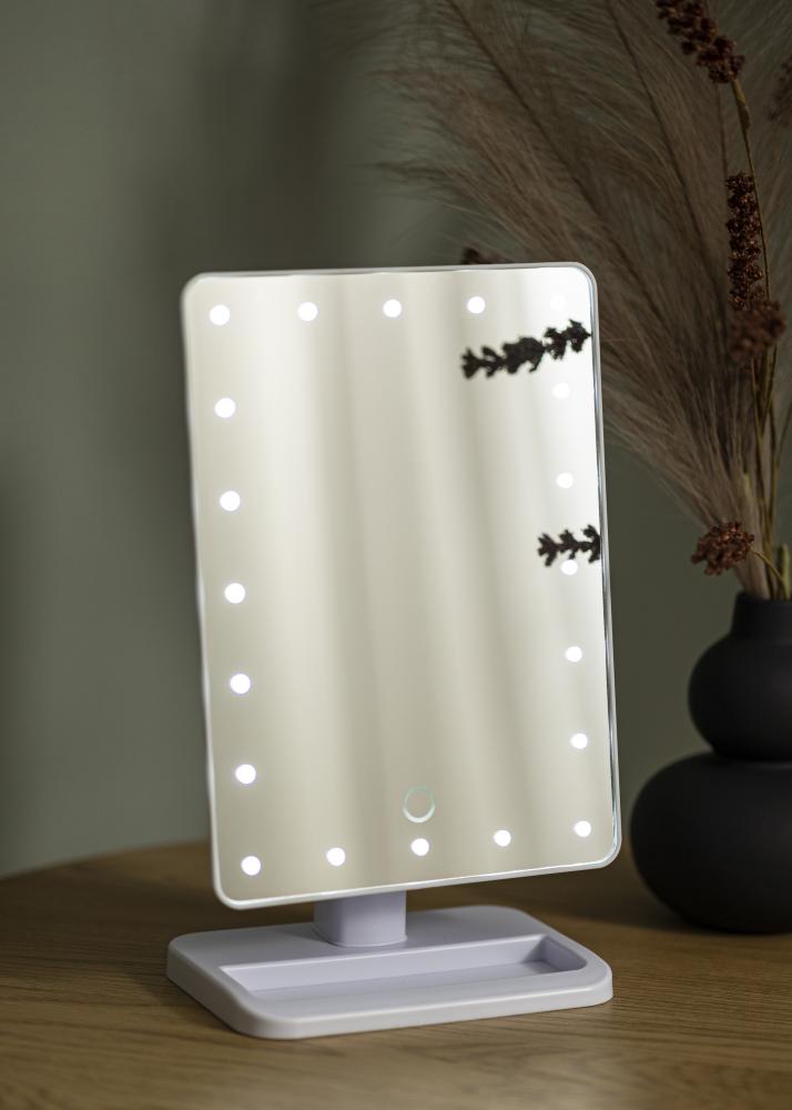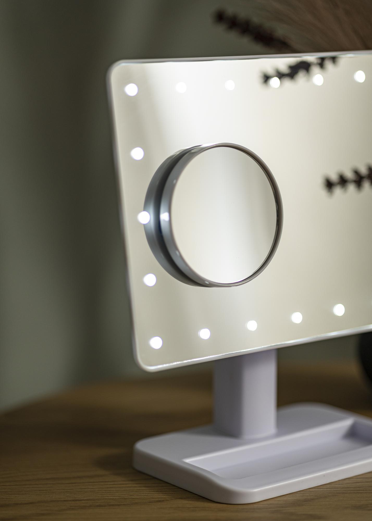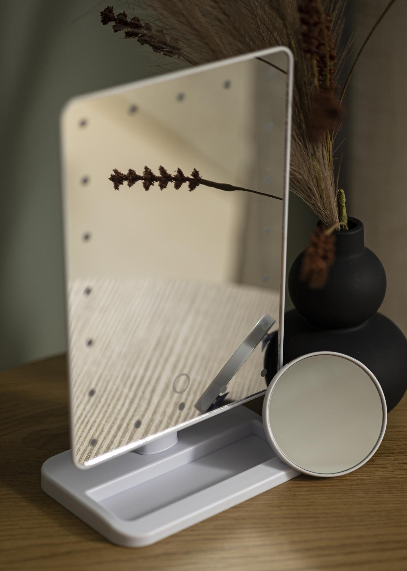 If you're looking for a smaller makeup mirror that fits easily in your suitcase then look no further. This model has a compact design with a 16.5x25 cm mirror on a practical stand that means you can use it on any flat surface. In addition to the main mirror, you’ll also receive a smaller 10x magnifying mirror. This can be used by itself or attached to the surface of the main mirror.