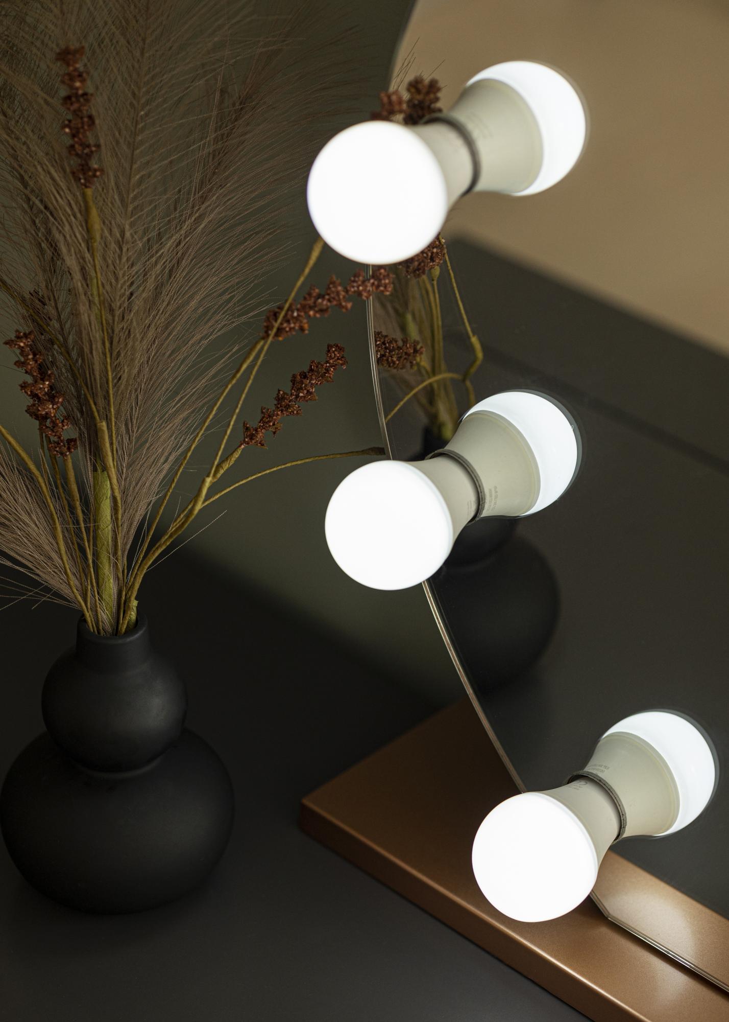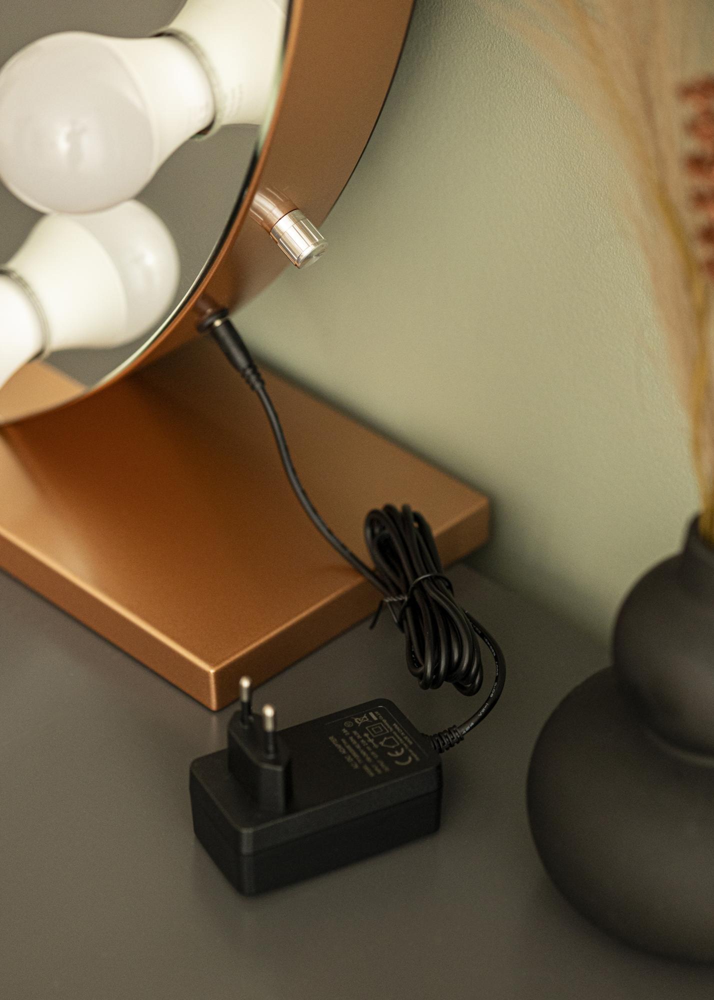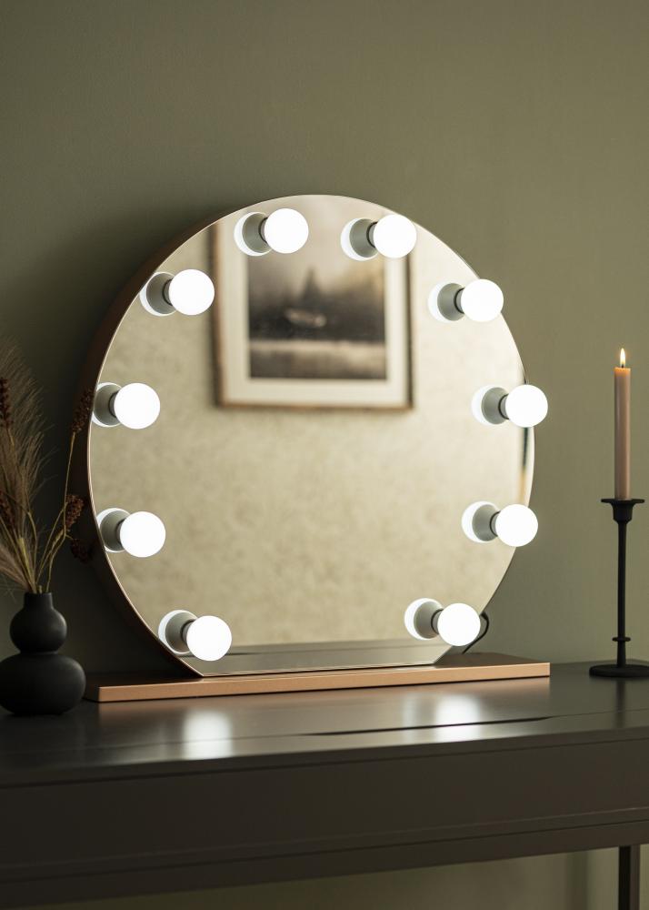Let this stunning makeup mirror in rose gold add the final touch to your room. The 10 light bulbs positioned in a frame around the edges of the mirror give off a cool white light. Thanks to the practical dimmer switch on the side of the mirror, you can easily adjust the intensity of the light according to your needs.