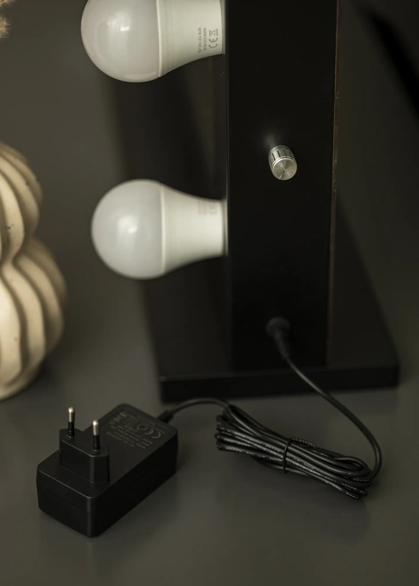 Black coloured frame decorated with 14 replaceable bulbs