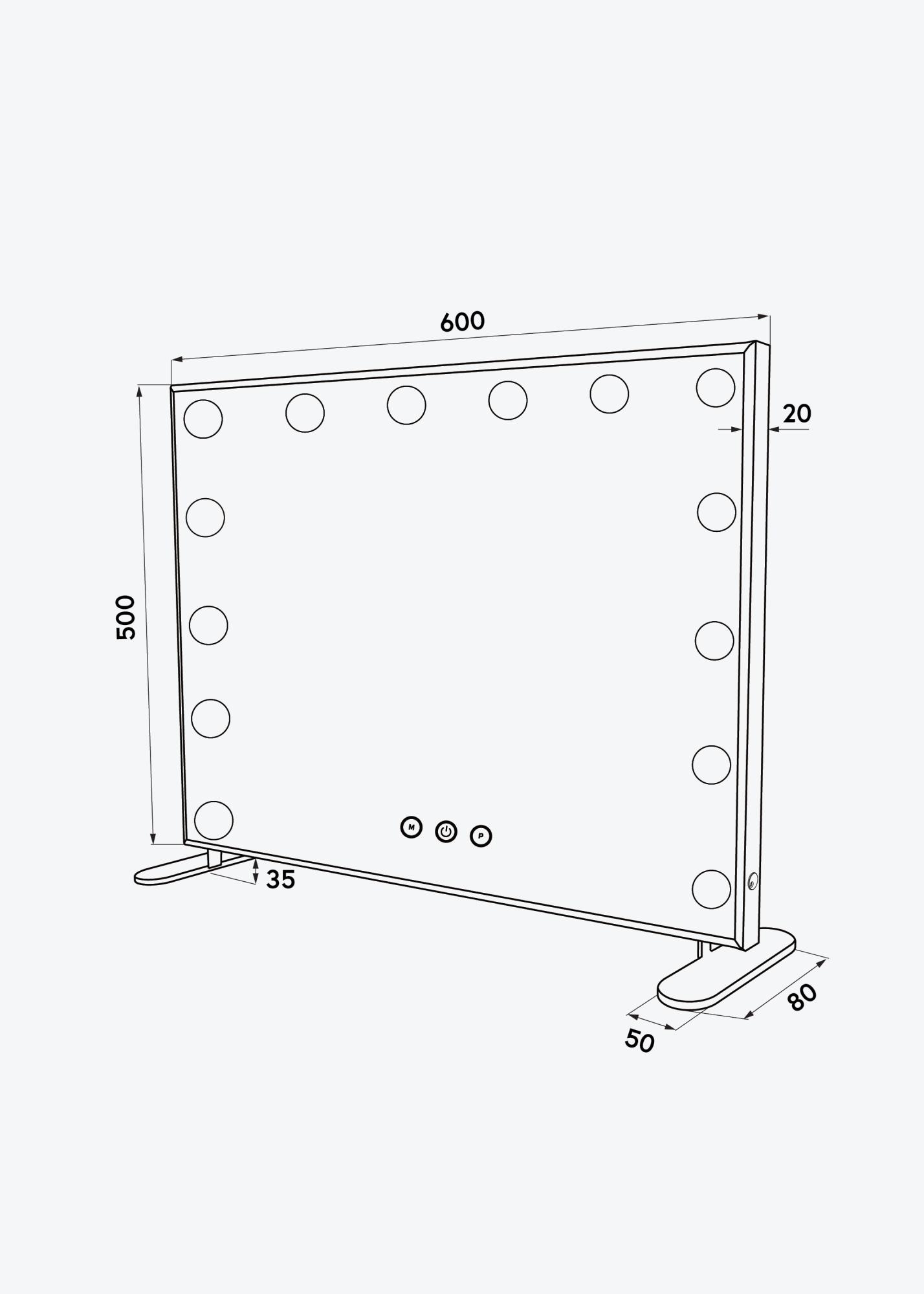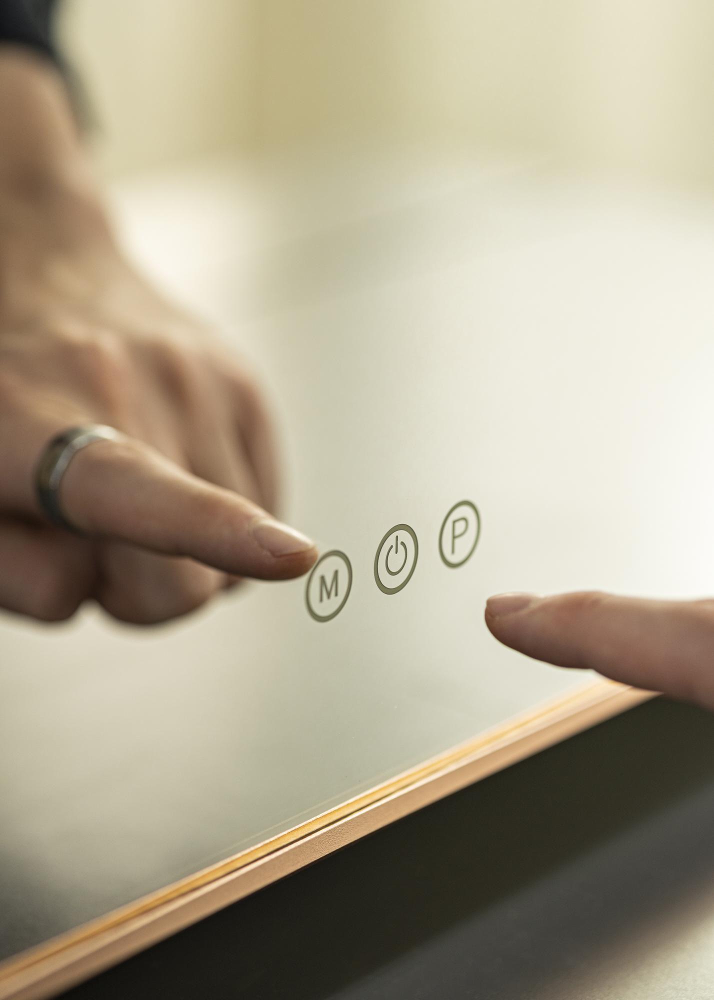 The LED lighting is adjustable, and to change the light settings, you use the touch buttons on the lower edge of the mirror. The ”M” button changes the colour temperature and the ”P” button adjusts the brightness. There is also a button that turns the lighting on and off. The flexible lighting means that this mirror suits both the living room when you want a softer background lighting and in the makeup corner when you desire a sharp light that helps you focus. The mirror is also equipped with a USB port, so you can easily charge your smart devices.