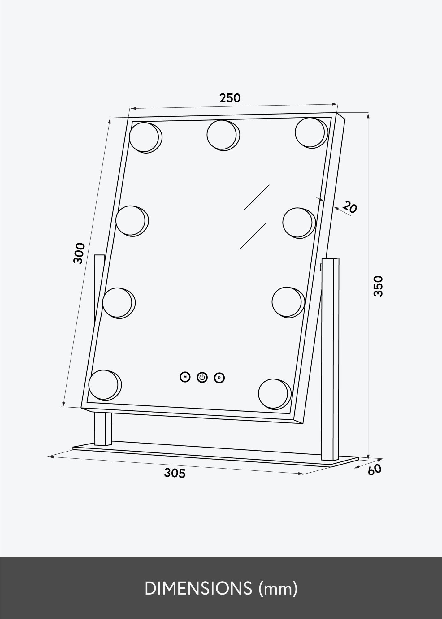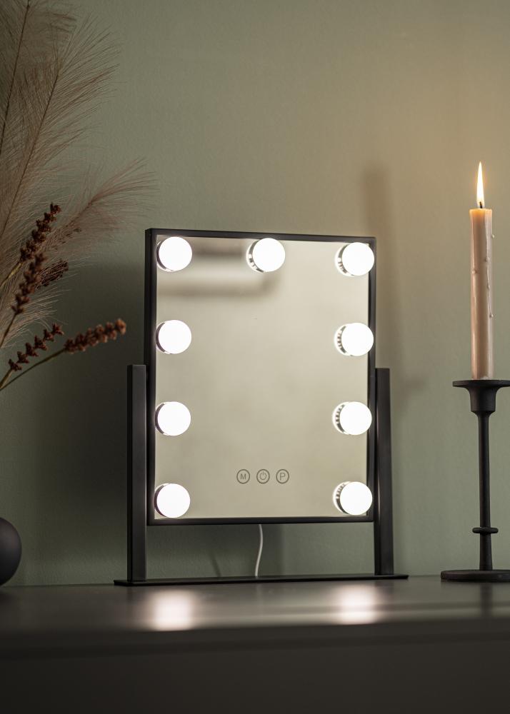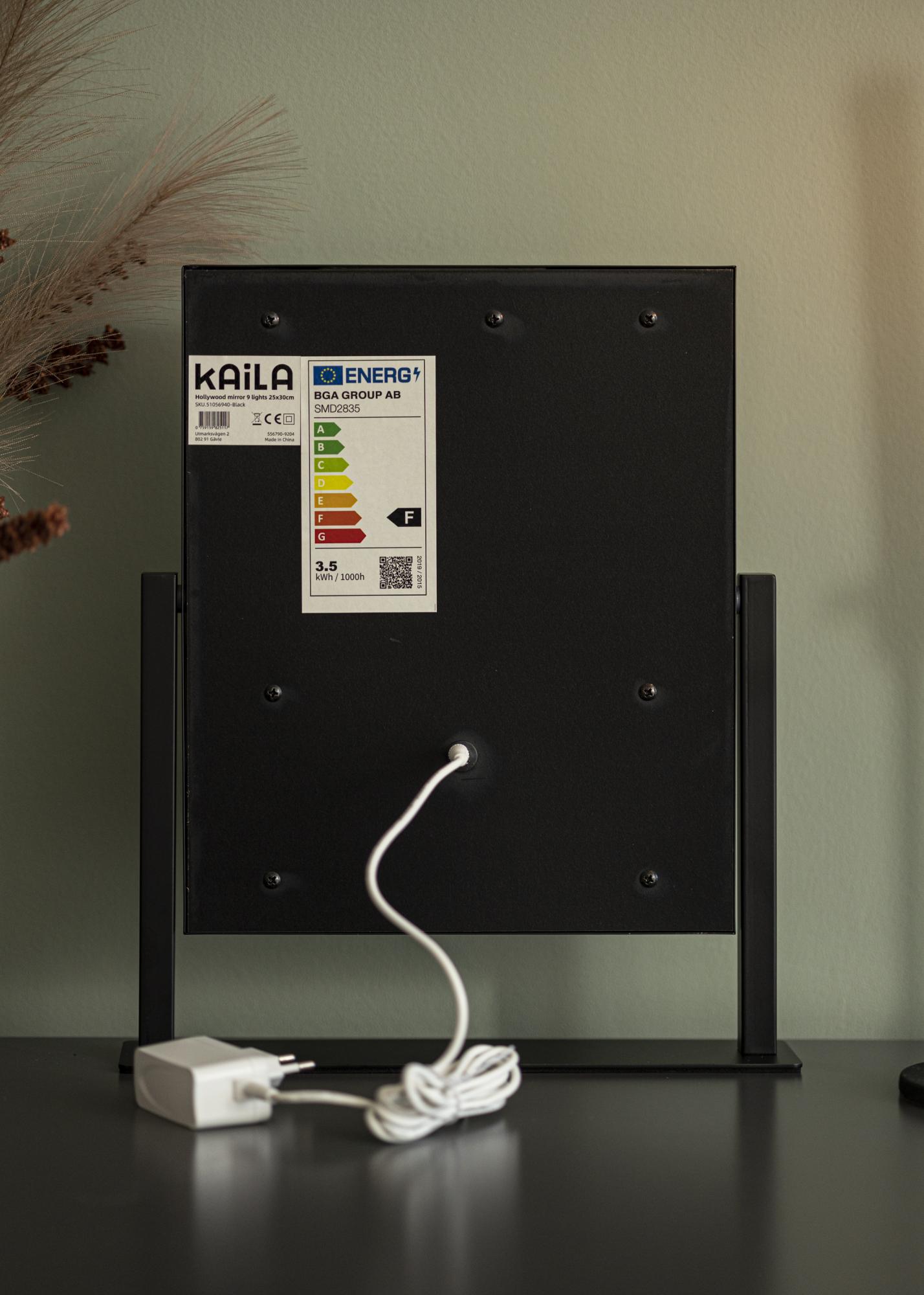 Get that Hollywood feeling with this glamorous makeup mirror from KAILA. It is as luxuriously beautiful as it is practical with its 9 LED lights that create a sophisticated frame around the mirror. The classic black colour makes this mirror easy to coordinate with a wide variety of different rooms and decor styles.