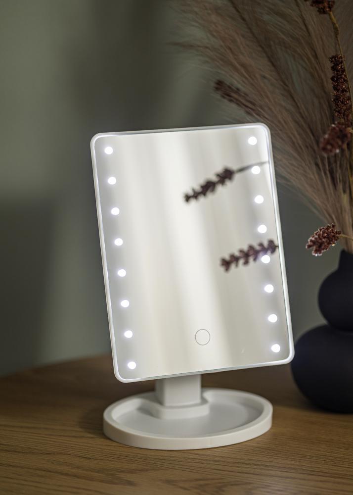 This is a stylish makeup mirror that’s perfect for using at home as well as when you’re travelling. The smaller format and light composite material make this 17.5x22.5 cm mirror easily portable. The mirror can also be angled and rotated to a horizontal position.