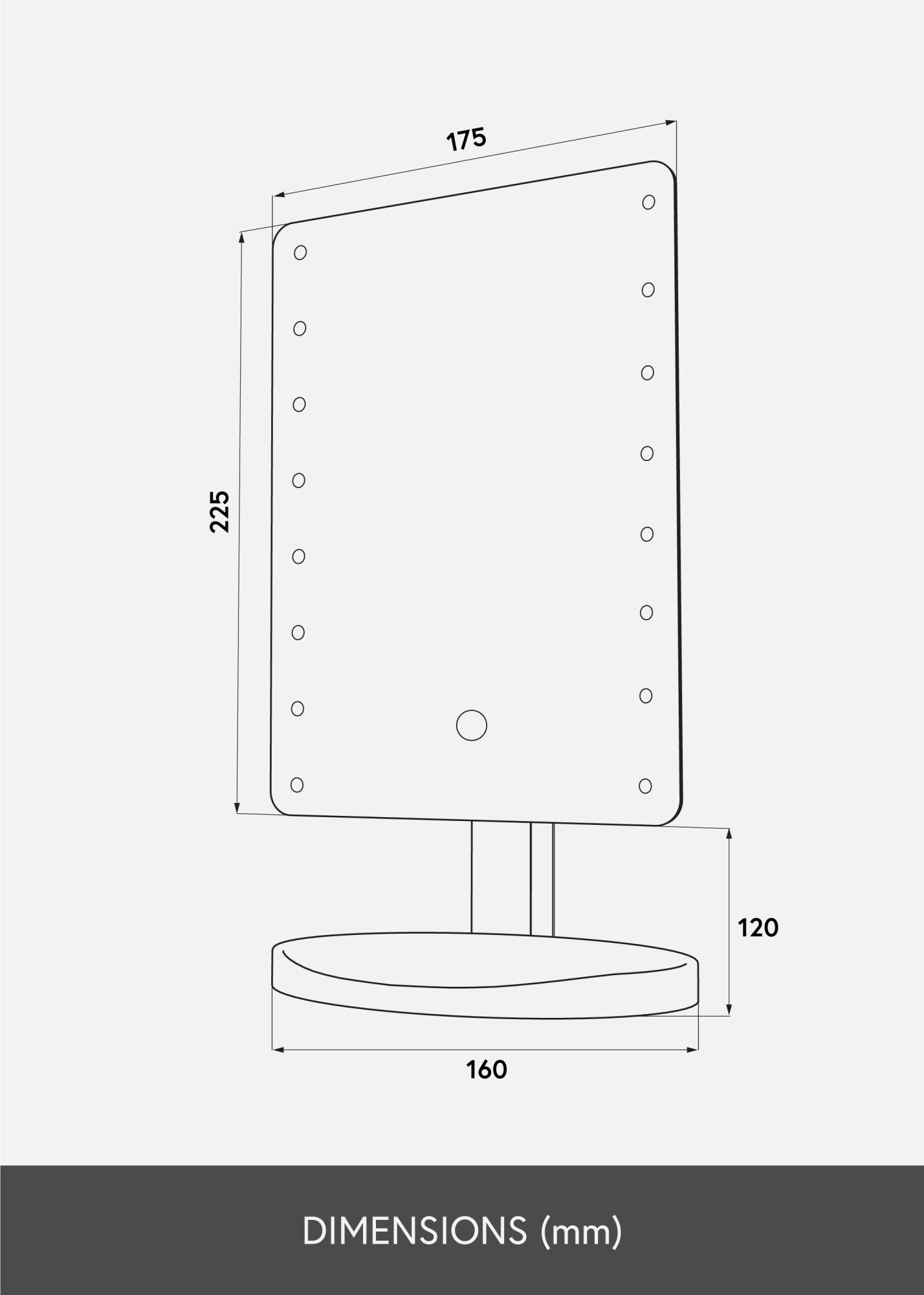 The mirror has inbuilt LED lighting that runs along the two longer sides of the mirror. The lighting emits a cool white light and is turned on by a switch on the back. The touch button on the front allows you to adjust the brightness to the level you require.
