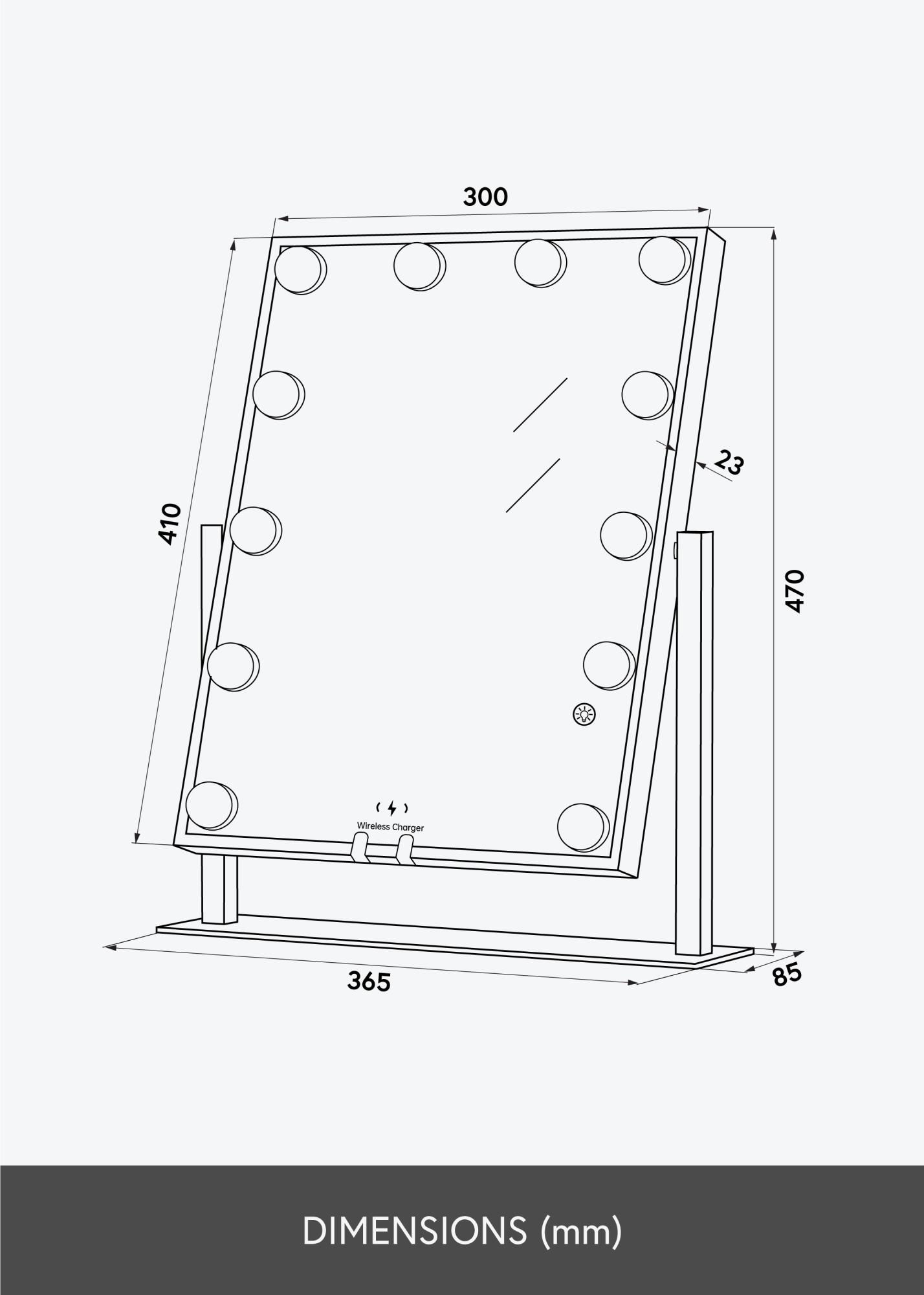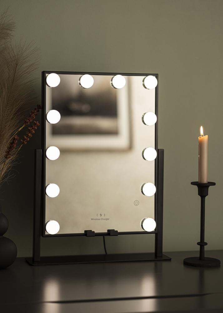 KAILA Makeup Mirror Hollywood 12 with Wireless Charger Black 30x41 cm