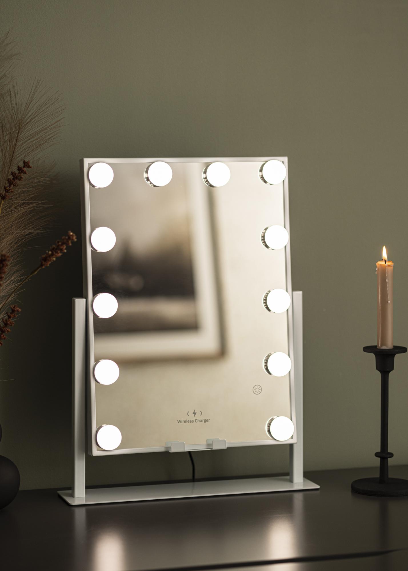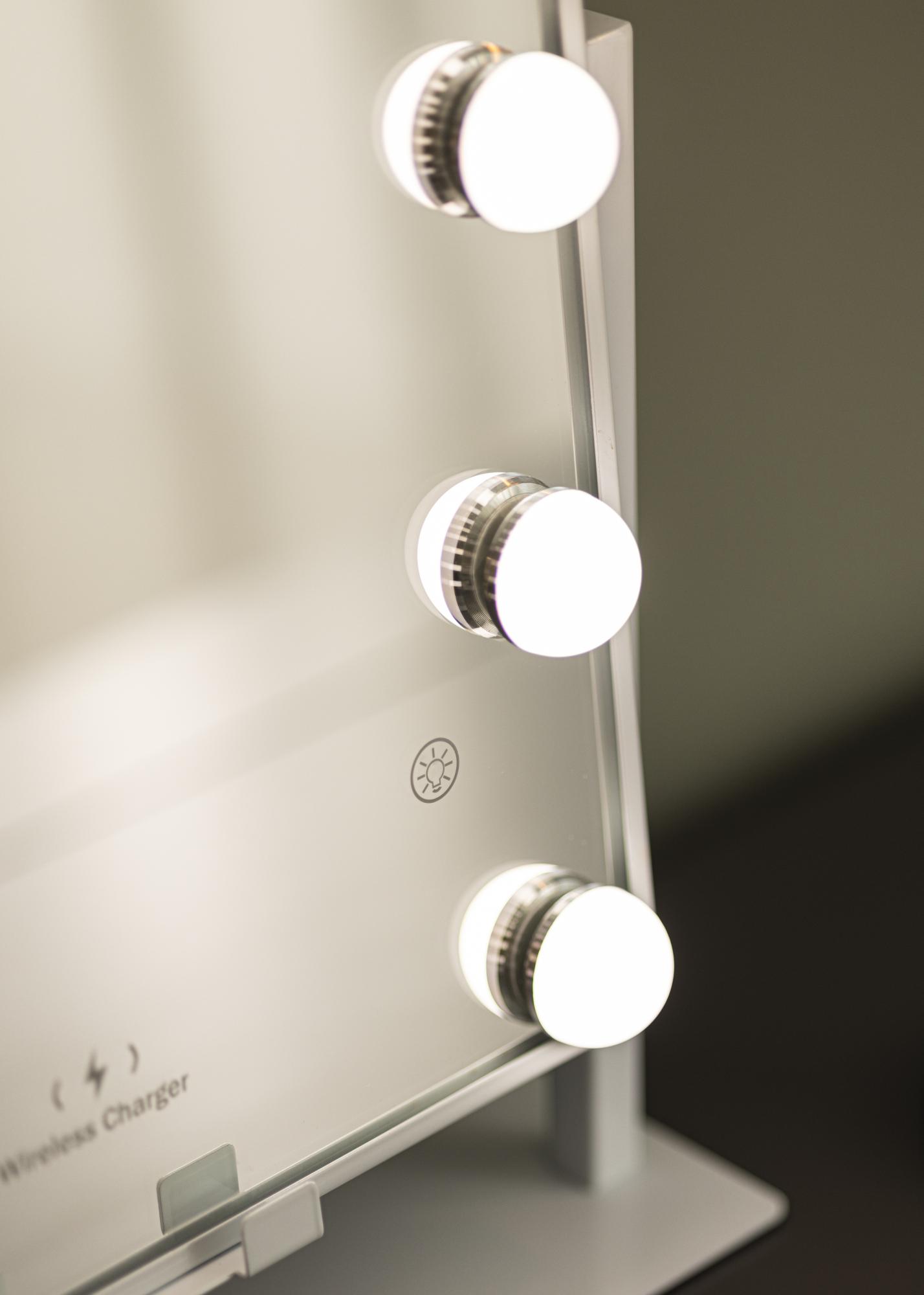 This stylish makeup mirror has a fabulous extra feature – it supports wireless charging for your smartphone! When the light is on, place your phone in the designated area on the mirror to charge it with 5V2A (10W). It's so convenient for busy mornings when you need your phone close while you’re getting ready in front of the mirror. The feature works for all smartphone models that support wireless charging.