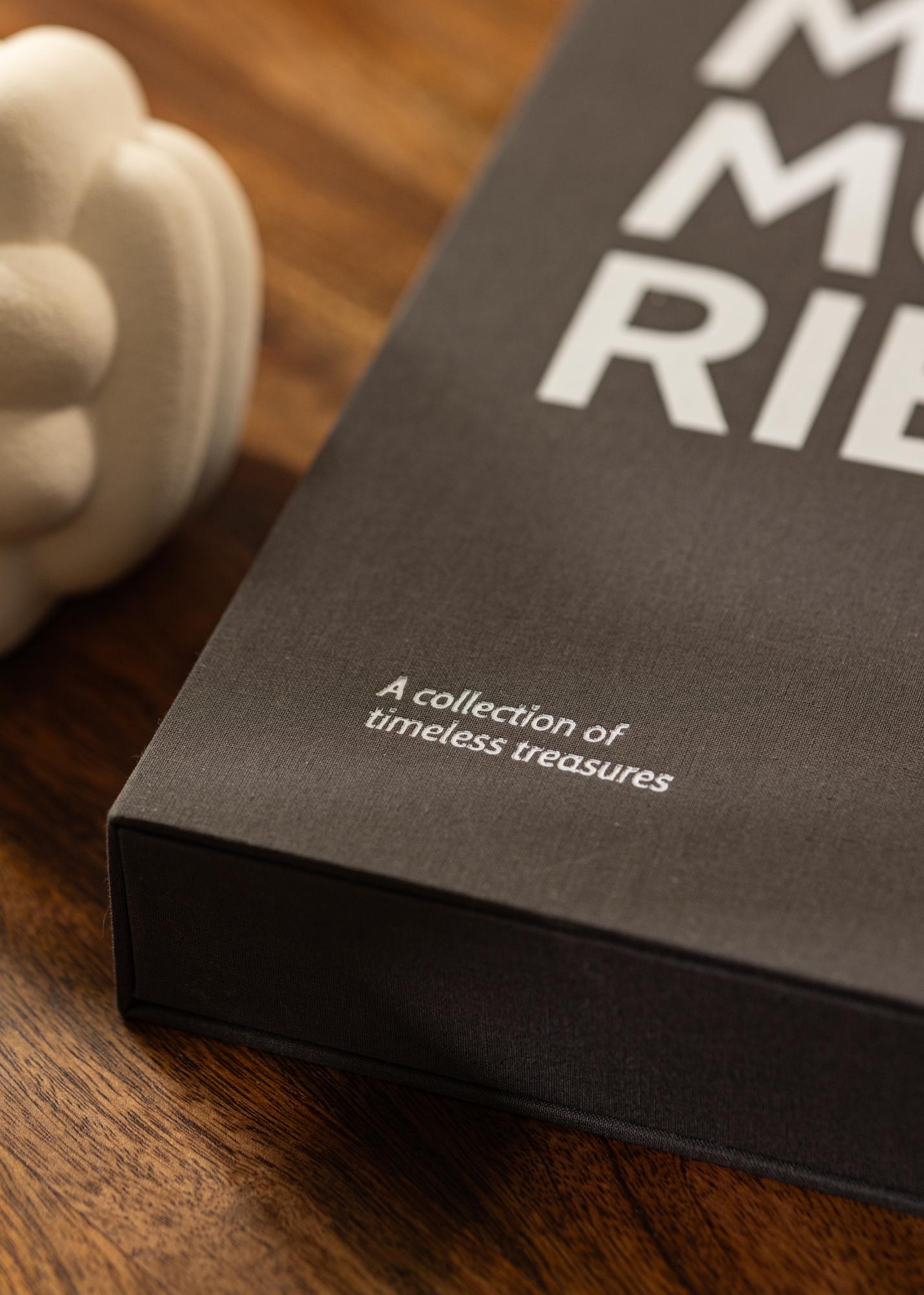 The album is stylishly wrapped in black fabric with the printed white text "MEMORIES" on both the front and spine. As well as this album title, the subtitle "A collection of timeless treasures" is printed in the lower left corner.