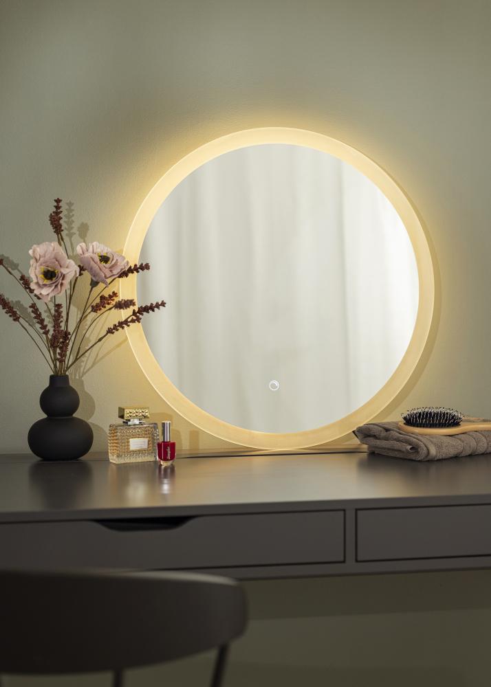 A mirror with integrated lighting makes your morning routine a breeze! This classic round option has a gentle light of 3000K. Measuring only 60 cm in diameter, this elegant yet compact wall mirror is perfect for use in virtually any bathrooms even when there’s limited space.