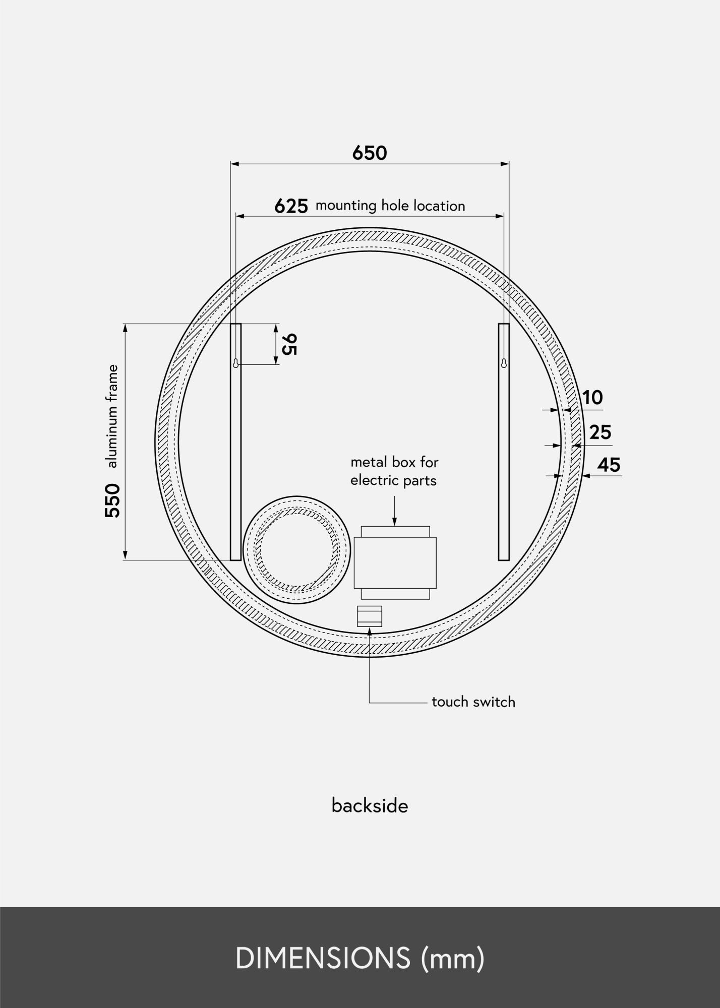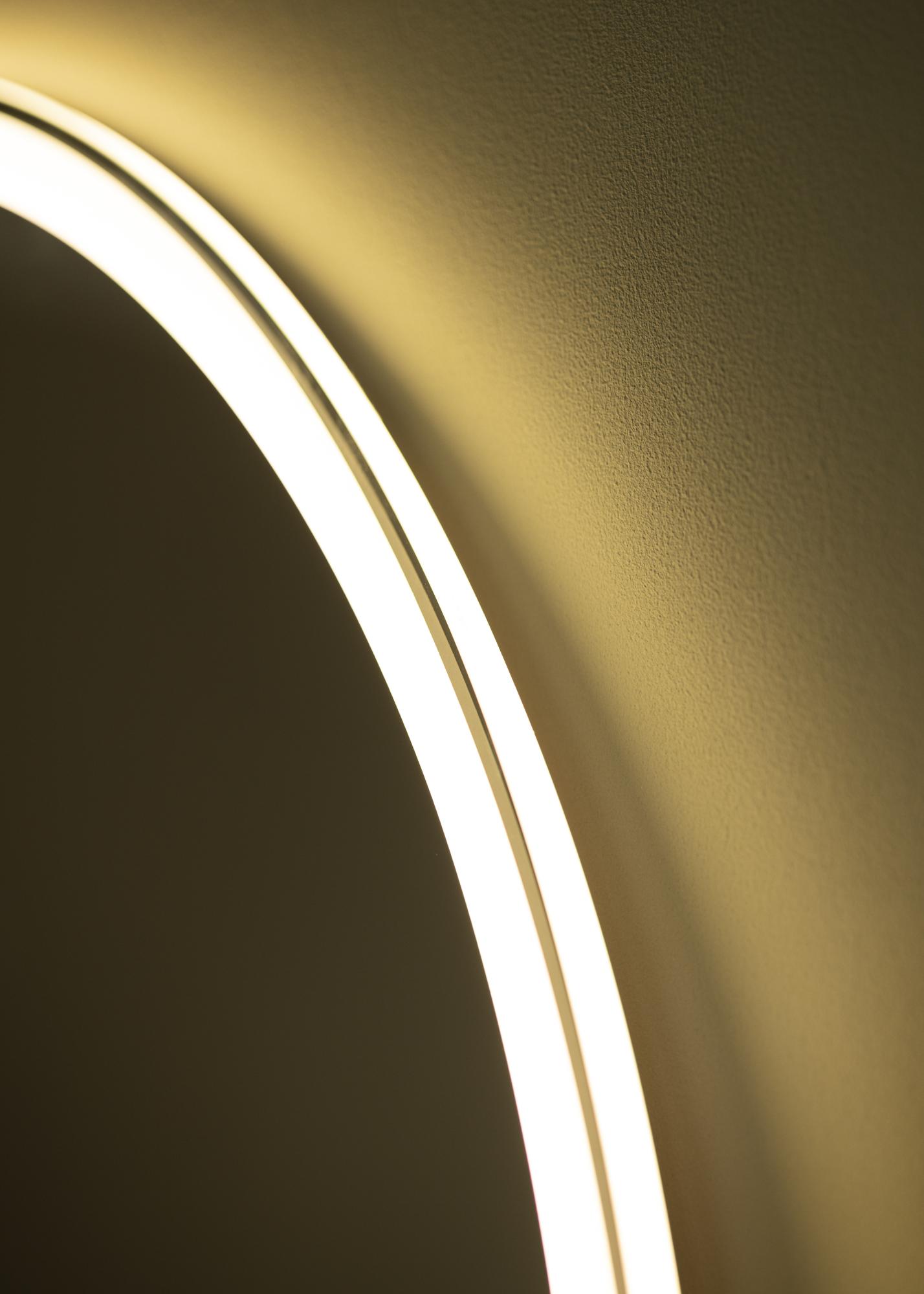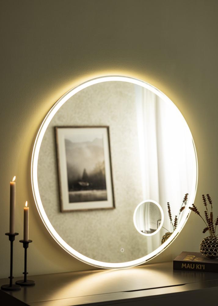Are you looking for a stylish bathroom mirror with inbuilt LED lighting and a zoom feature? Then this is the mirror for you! The mirror has a classic round shape and a loop of LEDs around its edge. In addition to the standard mirror glass, it also has a smaller area with 3x zoom surrounded by its own individual LED frame. The lighting has a pleasant 3000K glow which you can adjust to between 10-100% brightness. Simply hold the touch button in the lower edge of the mirror for a few seconds.