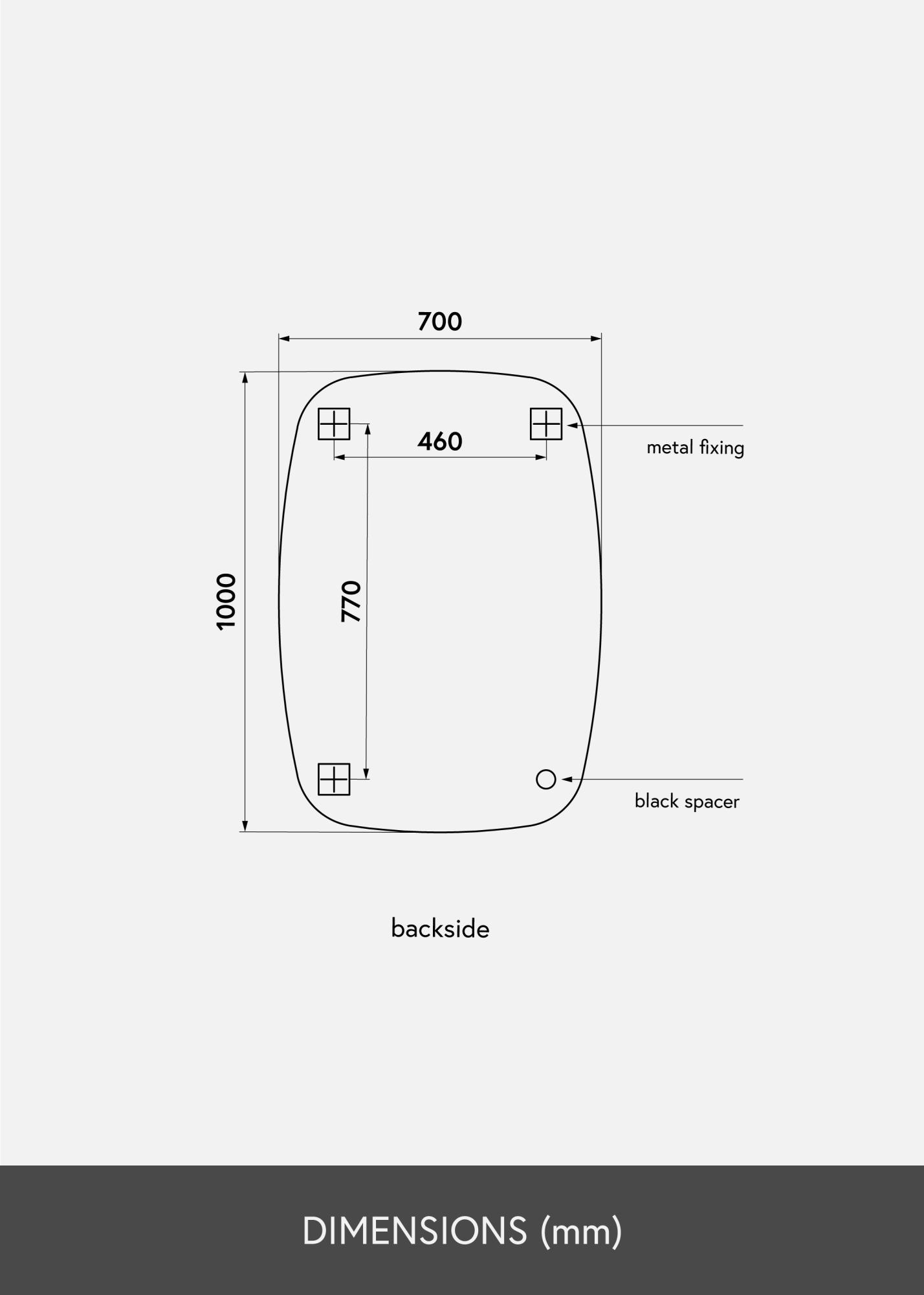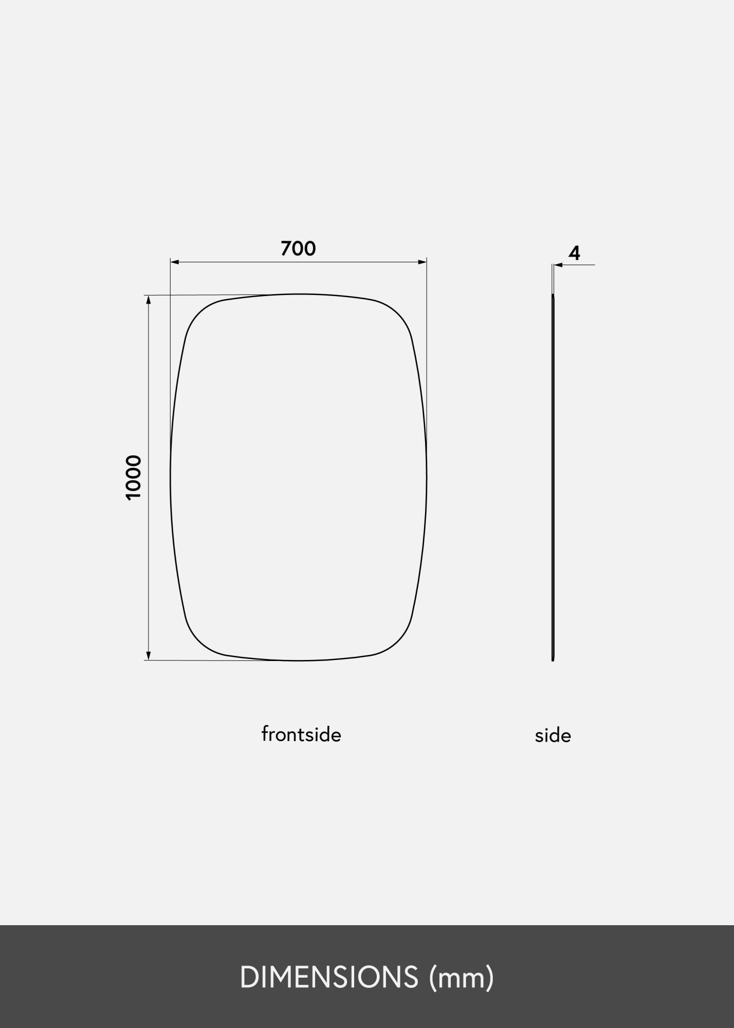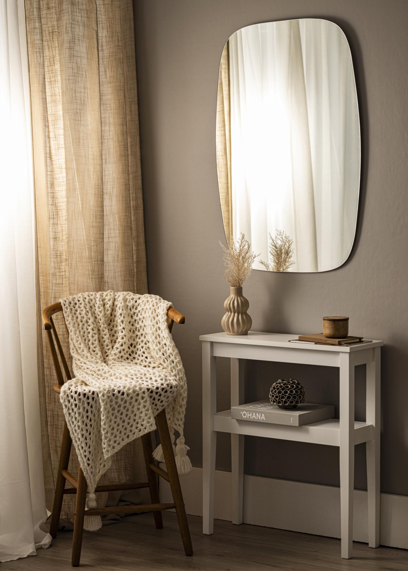 Beautiful mirror from KAILA, with rounded corners and elegant arched sides. The mirror has thin uncoloured mirror glass and the clean unframed design creates a crisp, minimalist touch. This stylish mirror will blend seamlessly into any home. The mirror is easy to hang with the cleverly designed wall bracket. The mirror measures 70x100 cm.