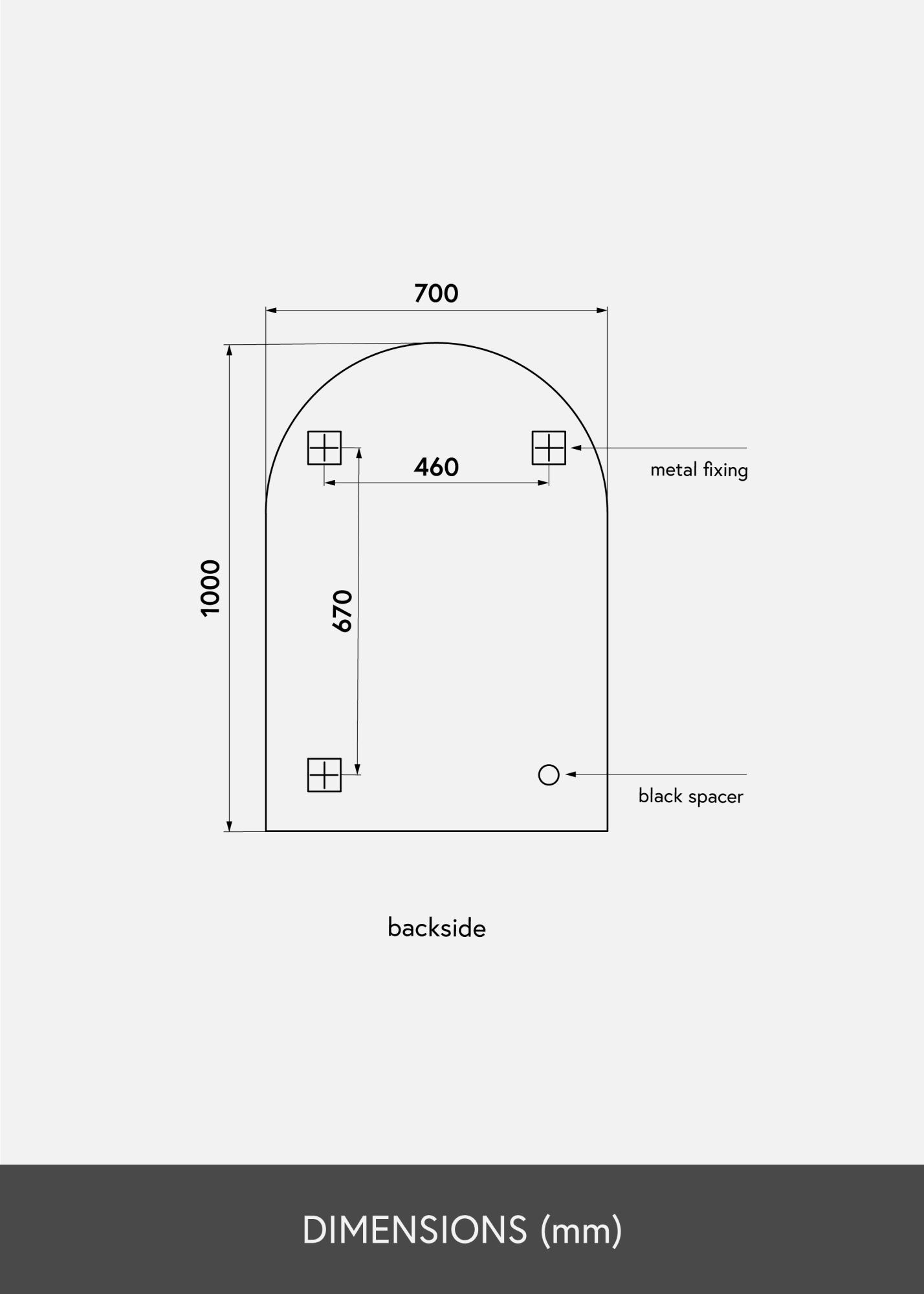 Thin, arch-shaped mirror from KAILA, ideal for both living rooms and bedrooms. The mirror has thin uncoloured mirror glass and the clean unframed design creates a crisp, minimalist touch. This stylish mirror will blend seamlessly into any home. The mirror is easy to hang with the cleverly designed wall bracket. The mirror measures 70x100 cm.