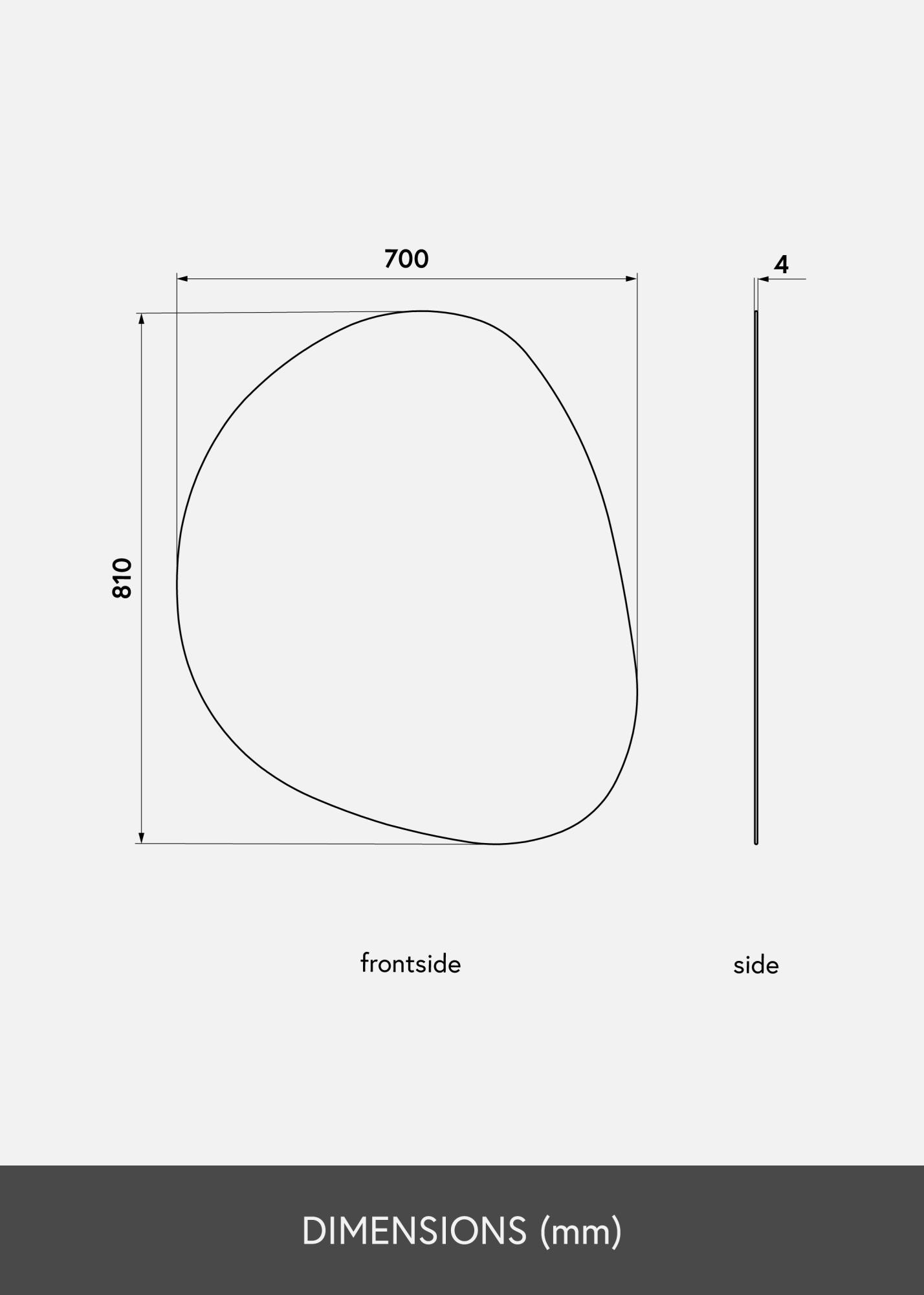 This wall mirror from KAILA has an elegant asymmetrical shape reminiscent of a tear or drop. The thin and unframed design of the mirror, combined with the faceted edge, creates a stylish and contemporary detail for any room. This eye-catching mirror will serve as a decorative focal point for any room, from the living room to the hall or bedroom. The mirror is 70x81 cm large.