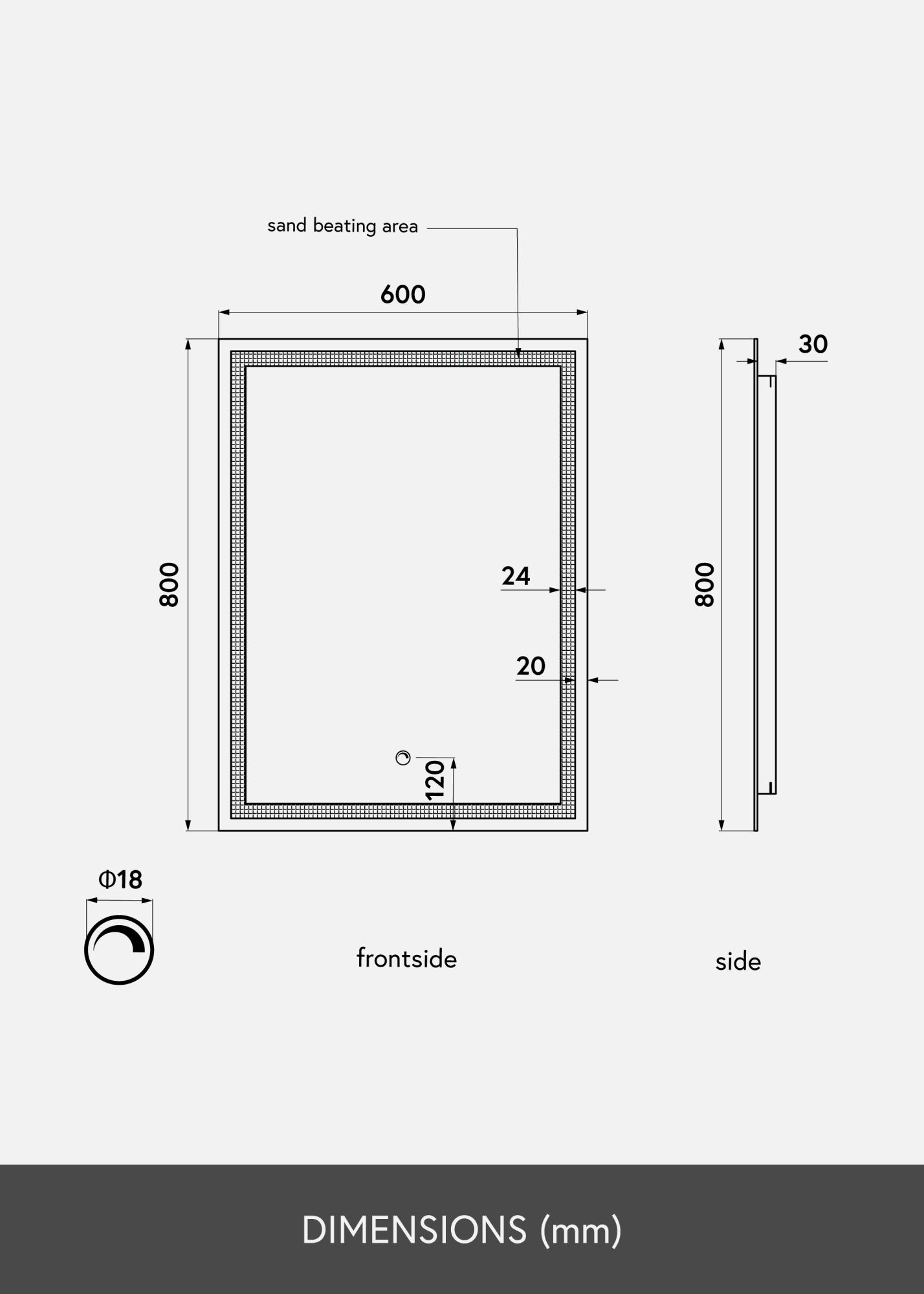 The lighting on the mirror consists of LEDs. Although they are not replaceable, the LEDs have a lifespan equivalent to the life of the product. After 50,000 hours, it is estimated that the brightness will reduce to approx. 50% of original strength.
