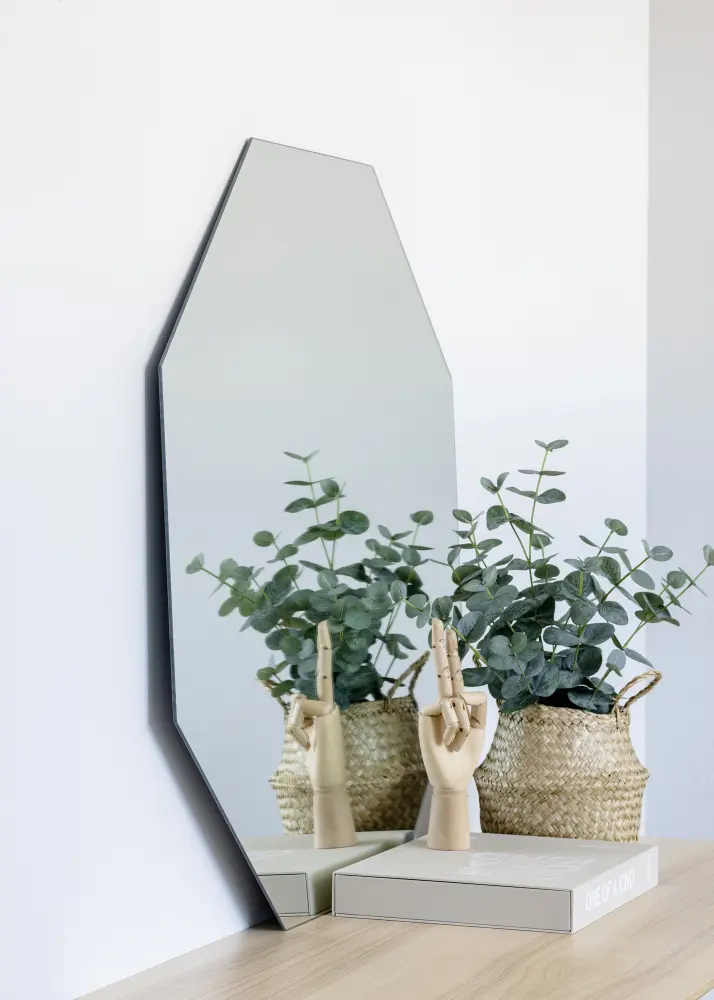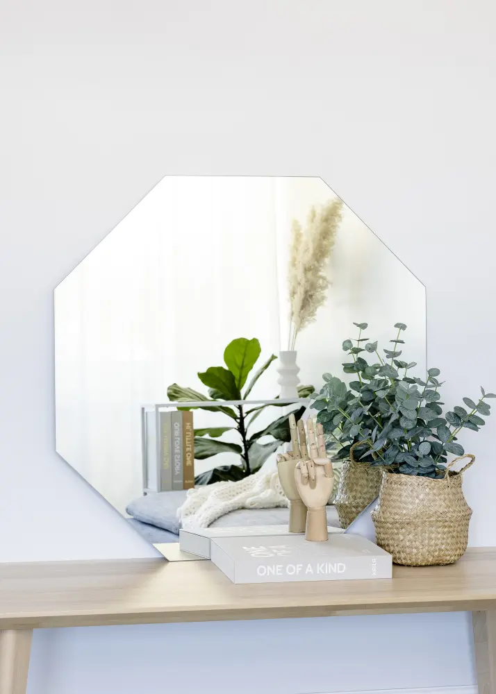 This stylish mirror from KAILA is perfect for the living room, hallway or bedroom. The mirror's octagonal and unframed design creates the perfect balance between minimalism and glamour. By mixing and matching different qualities, such as shapes and materials, you can create your own distinct interior design style, and this mirror can serve as a fantastic contrast to other items. The mirror includes a bracket for easy hanging on a wall.