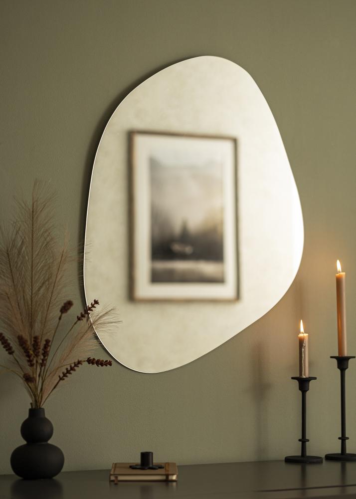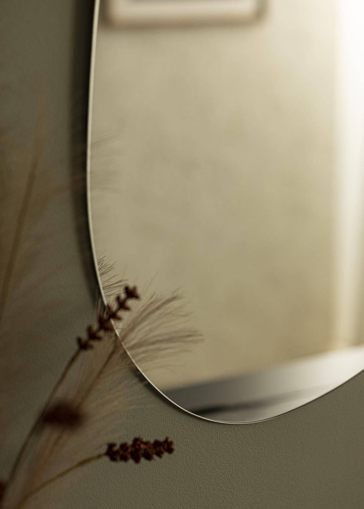 Are you looking for an elegant wall mirror for your home? Then this mirror is for you! The mirror has a frameless design, thin 4 mm mirror glass and a soft shape perfect for breaking up the hard lines of furniture and other decor details.