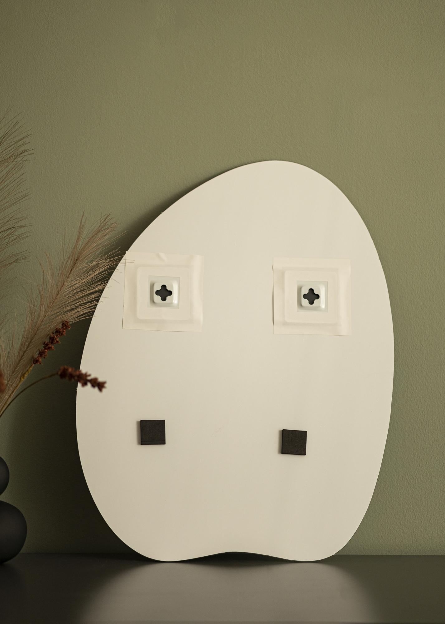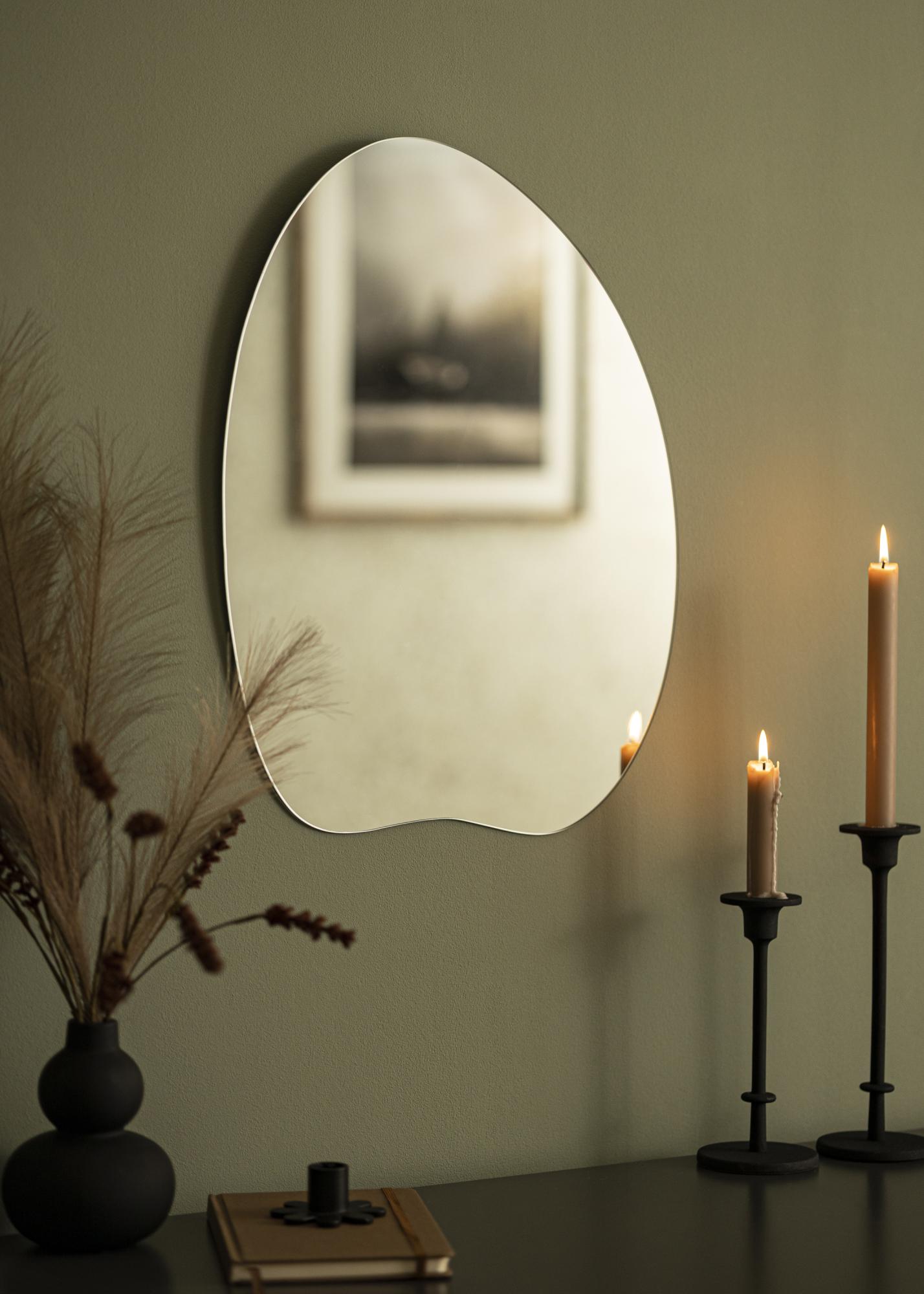 If you are looking for a wall mirror with an exciting shape, this is the mirror for you. The unique design has a rounded shape with a wavy lower edge that combines beautifully with the thin 4 mm mirror glass. The mirror is frameless giving it a minimalist appearance. Thanks to the smart brackets on the back, this mirror is easily wall mounted in portrait format.