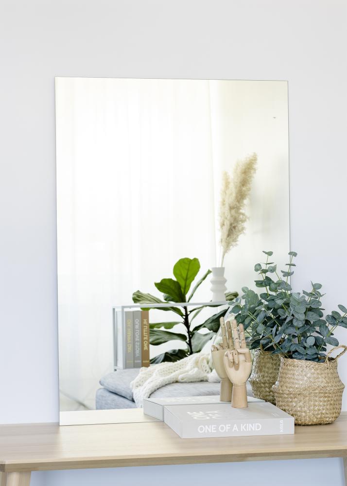Rectangular wall mirror with sharp edges from KAILA, creating a strikingly symmetrical look. A classic, straight-edged mirror with clean lines adds a touch of elegance to any space. The timeless design will blend seamlessly with your home's furniture and décor, no matter their shape or material. The mirror looks fantastic on any wall, and comes with a cleverly designed wall hanger. The mirror measures 70x100 cm.