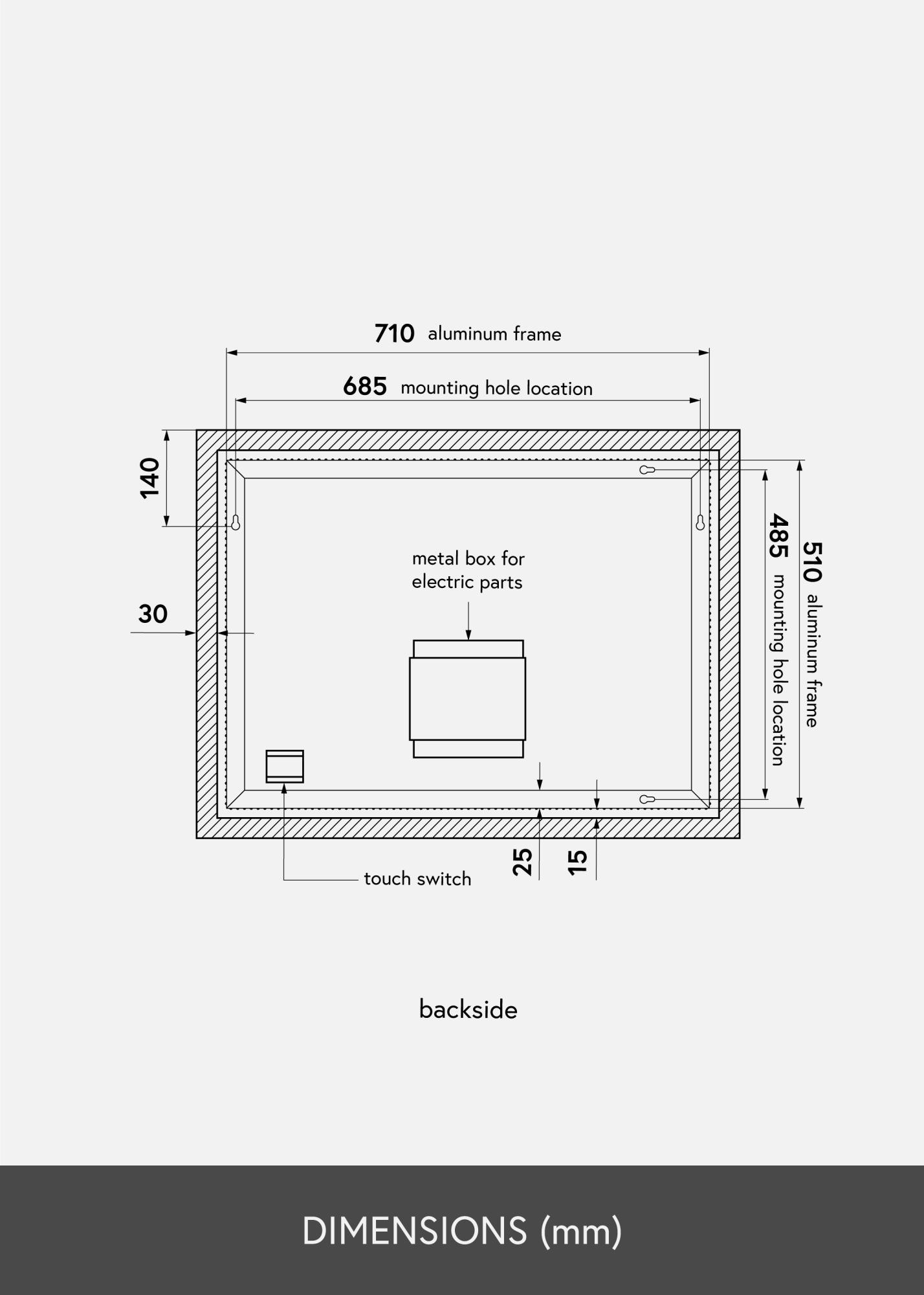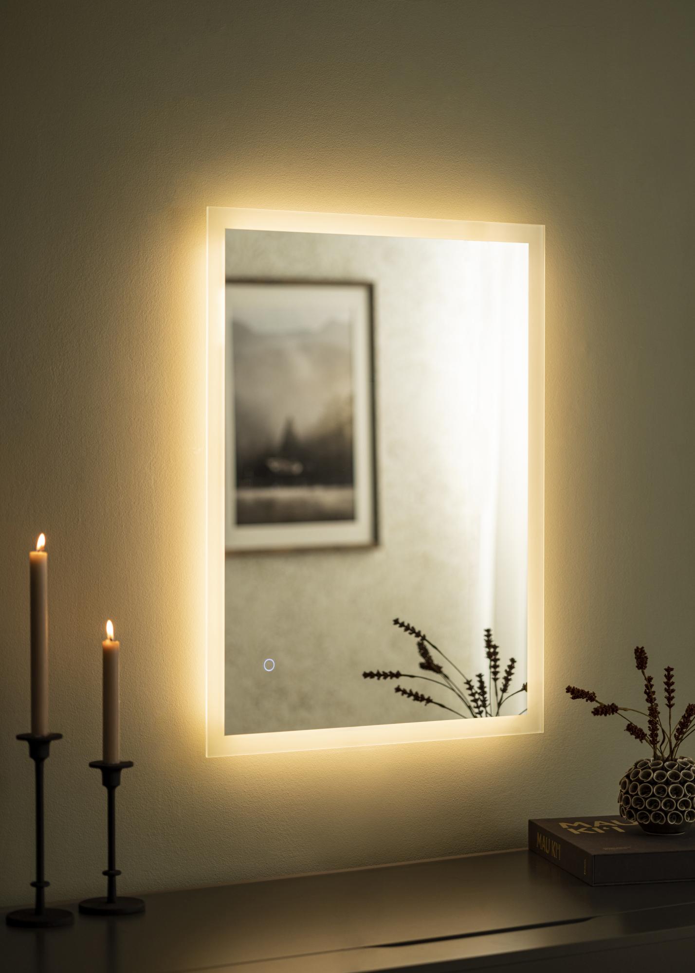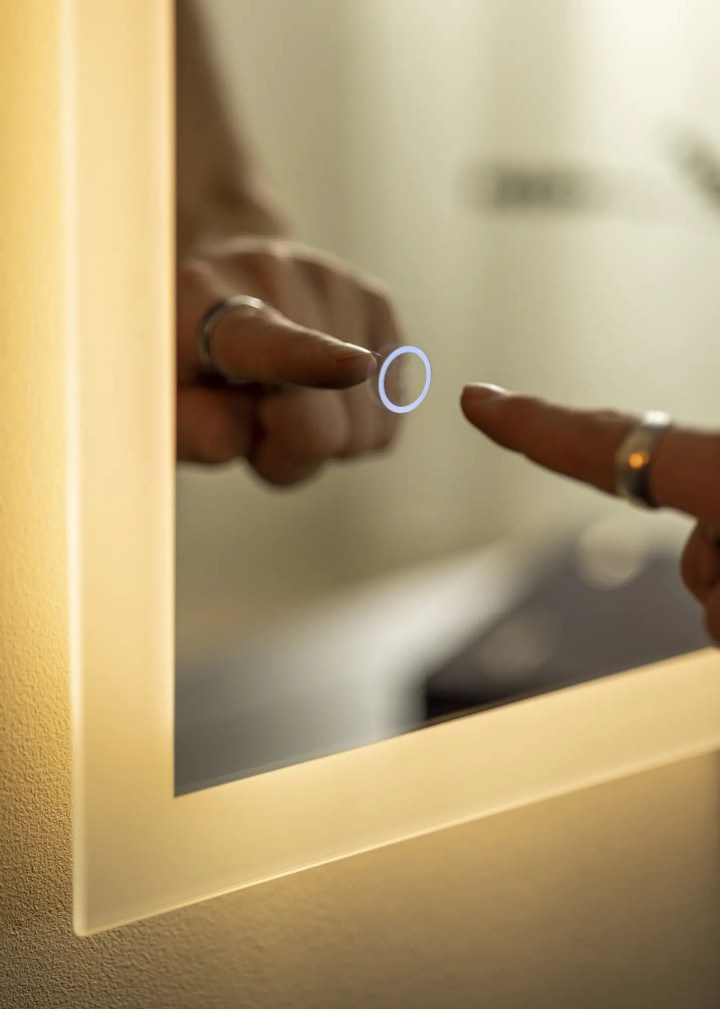 This timeless mirror with integrated lighting will add a touch of style to any bathroom. It has LED lighting positioned behind the glass which produces a soft glow framing the mirror. The lighting has a maximum strength of 3000K which you can adjust by holding down the touch button in the corner of the mirror for a few seconds. The brightness can be set to between 10%-100%.
