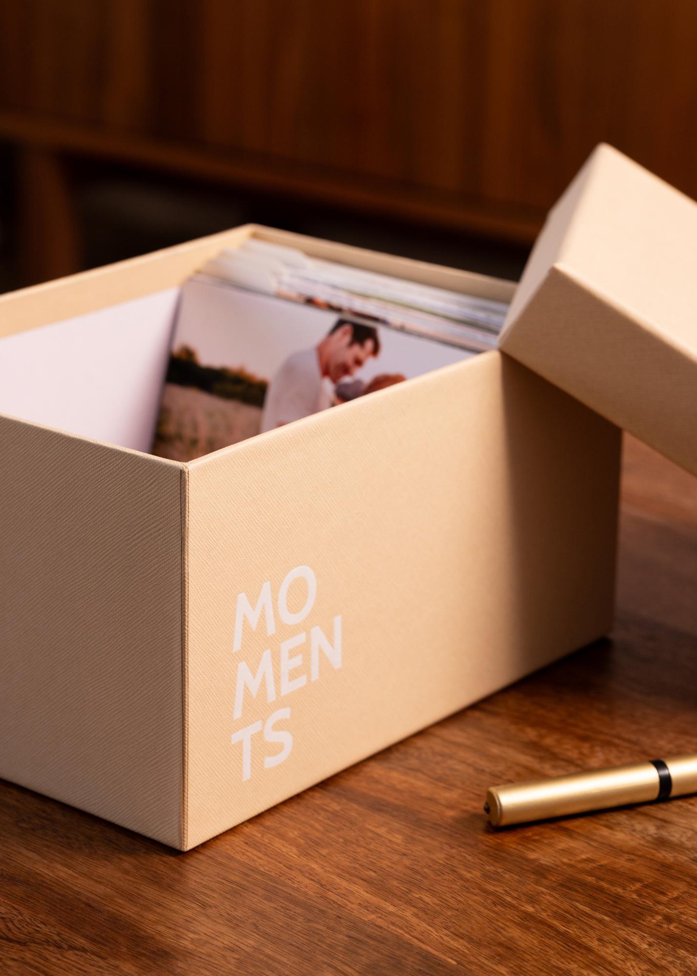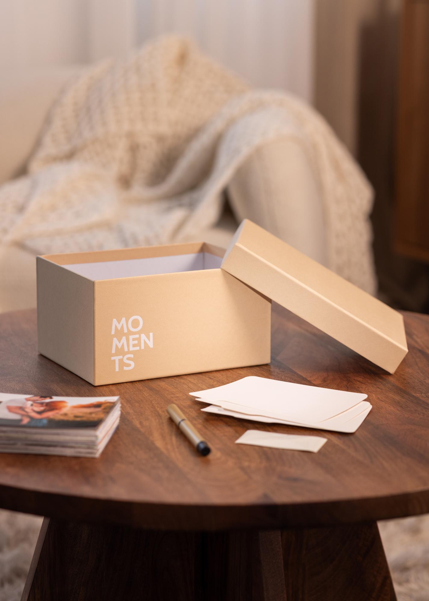 KAILA Memories Photo Box is an elegant and functional photo box that holds up to 700 pictures in the size 10x15 cm. The cream-colored design provides a soft and stylish feel that blends into most homes. Perfect for organizing and preserving your favorite memories in a beautiful and practical way.