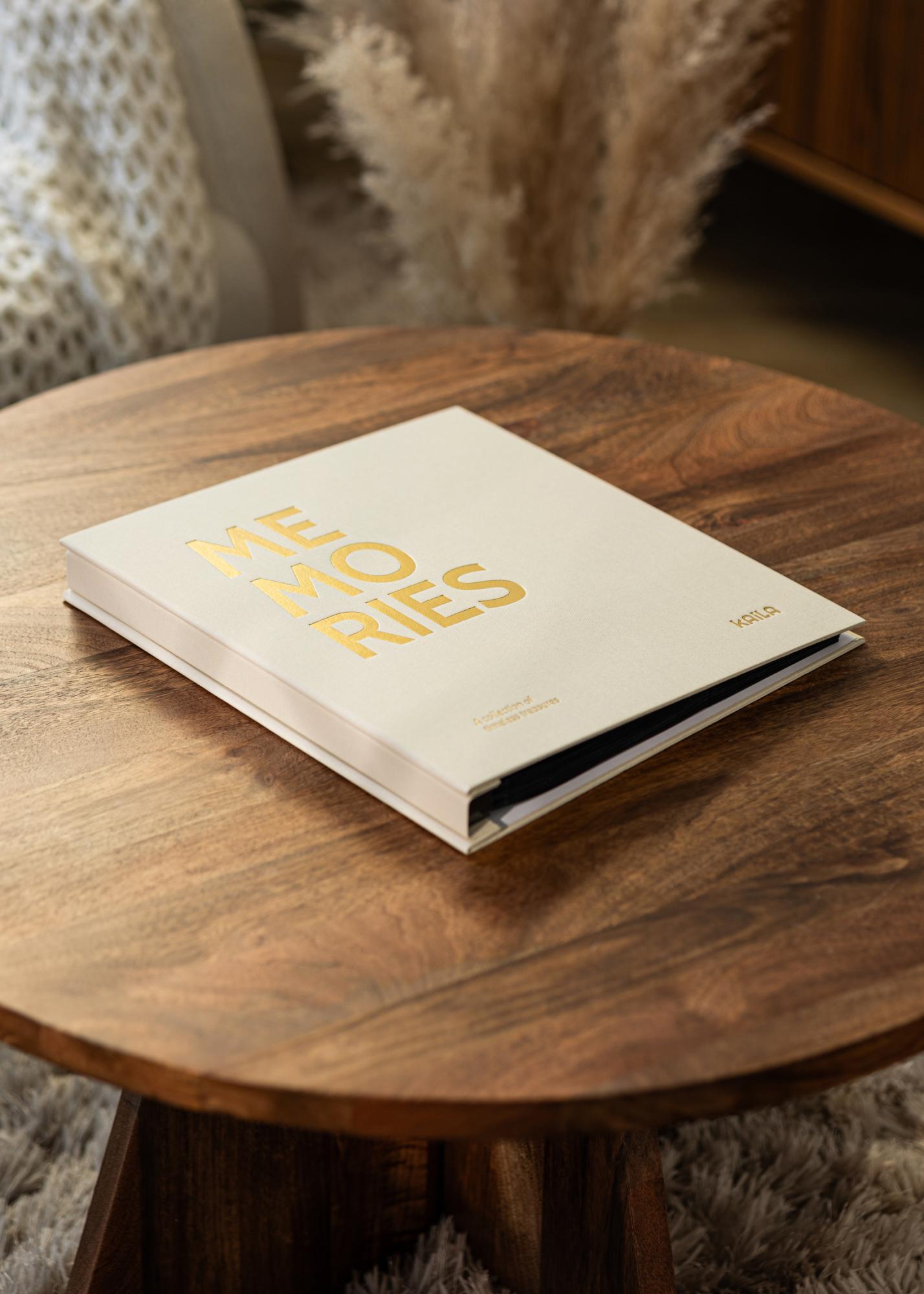 This is a sleek photo album with a timeless design and practical photo pockets – perfect for those who want to preserve their best photo memories in a stylish and simple way. The album is covered in a beige textile and the front is adorned with the text "MEMORIES" in gold print. For an extra touch, the album also has the subtitle "A collection of timeless treasures" written in one corner. The textile-covered covers, along with the text's gold color, make the photo album a luxurious interior detail that you will want to keep on display.