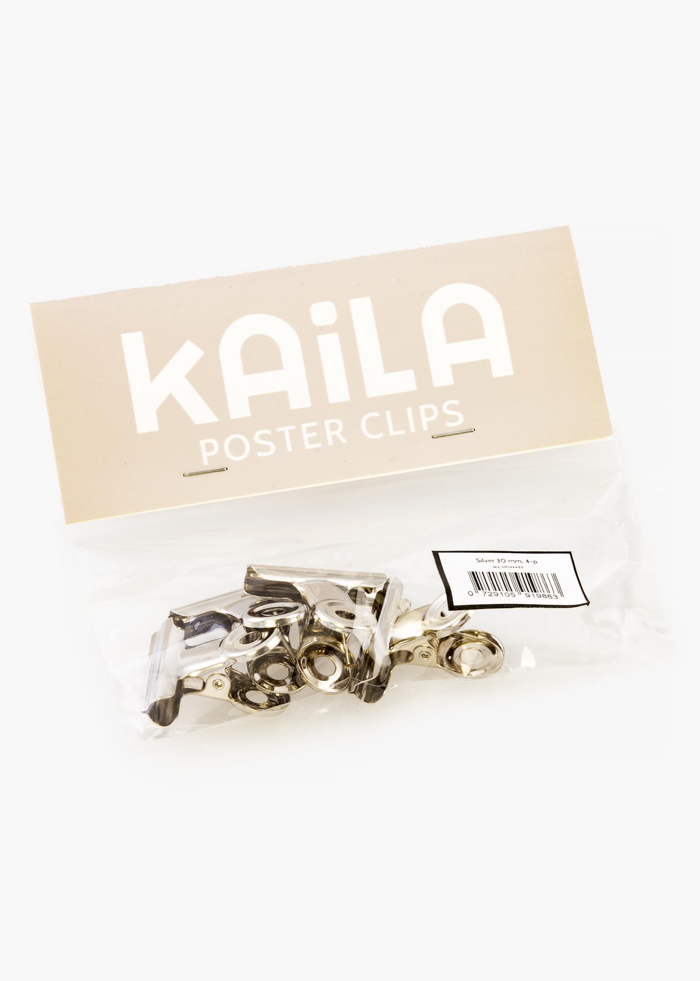 This modern poster clip comes in several sizes. This specific clip has a width of 30 mm. It comes in a pack of four.