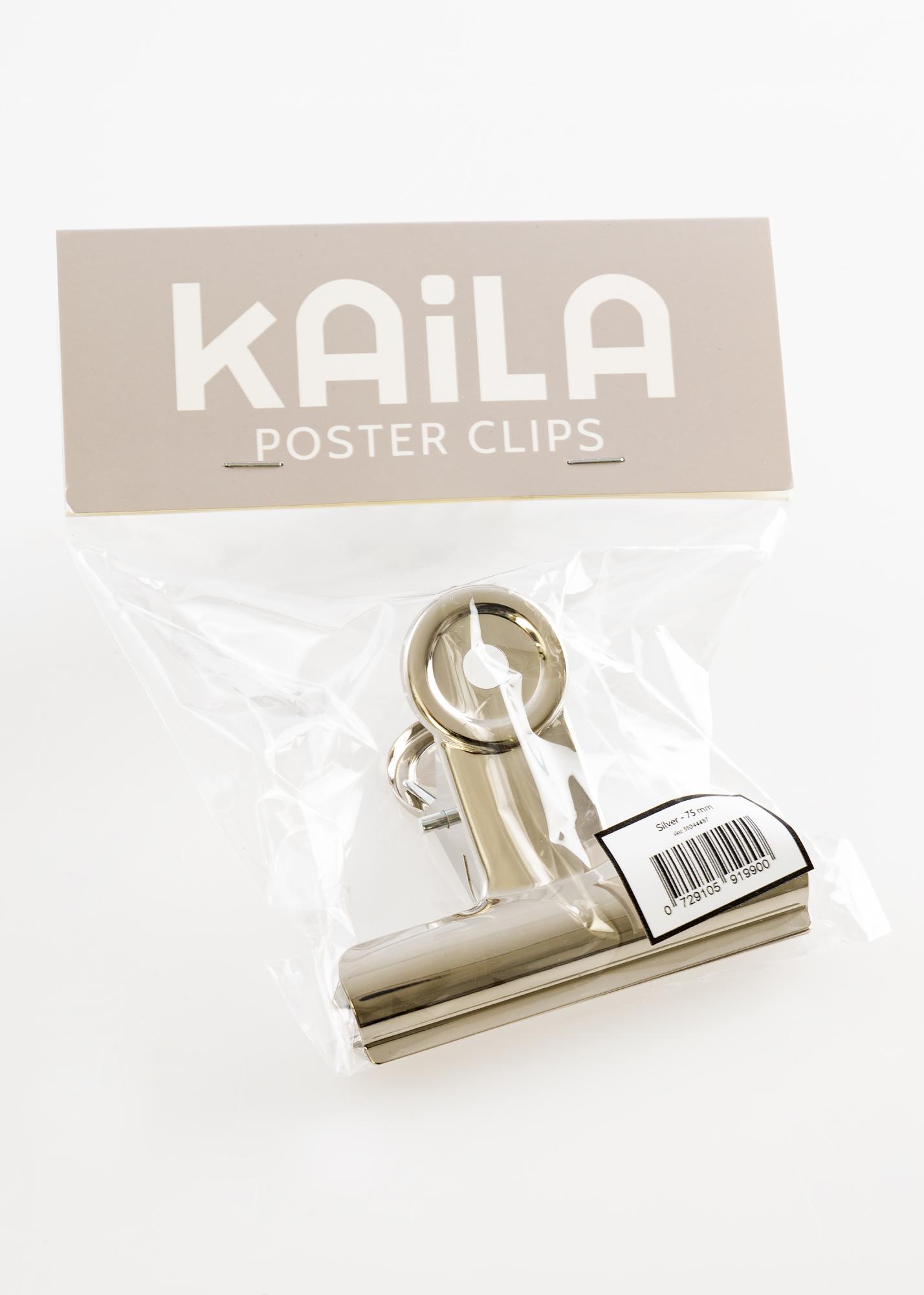 This fashionable poster clip comes in several sizes. This specific clip has a width of 75 mm.