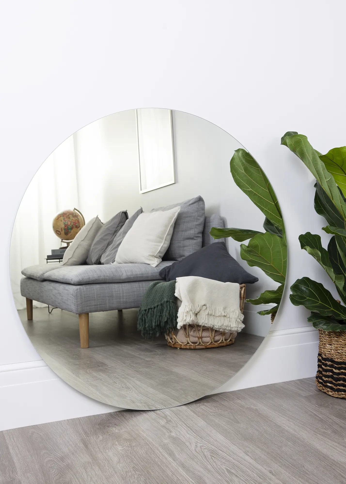 100 cm Ø round mirror that is part of a series of round mirrors from KAILA. Available in a total of 13 sizes so that you can find the size that fits perfectly in your room. The mirror is extremely thin and sleek and suits all types of rooms and interior styles.