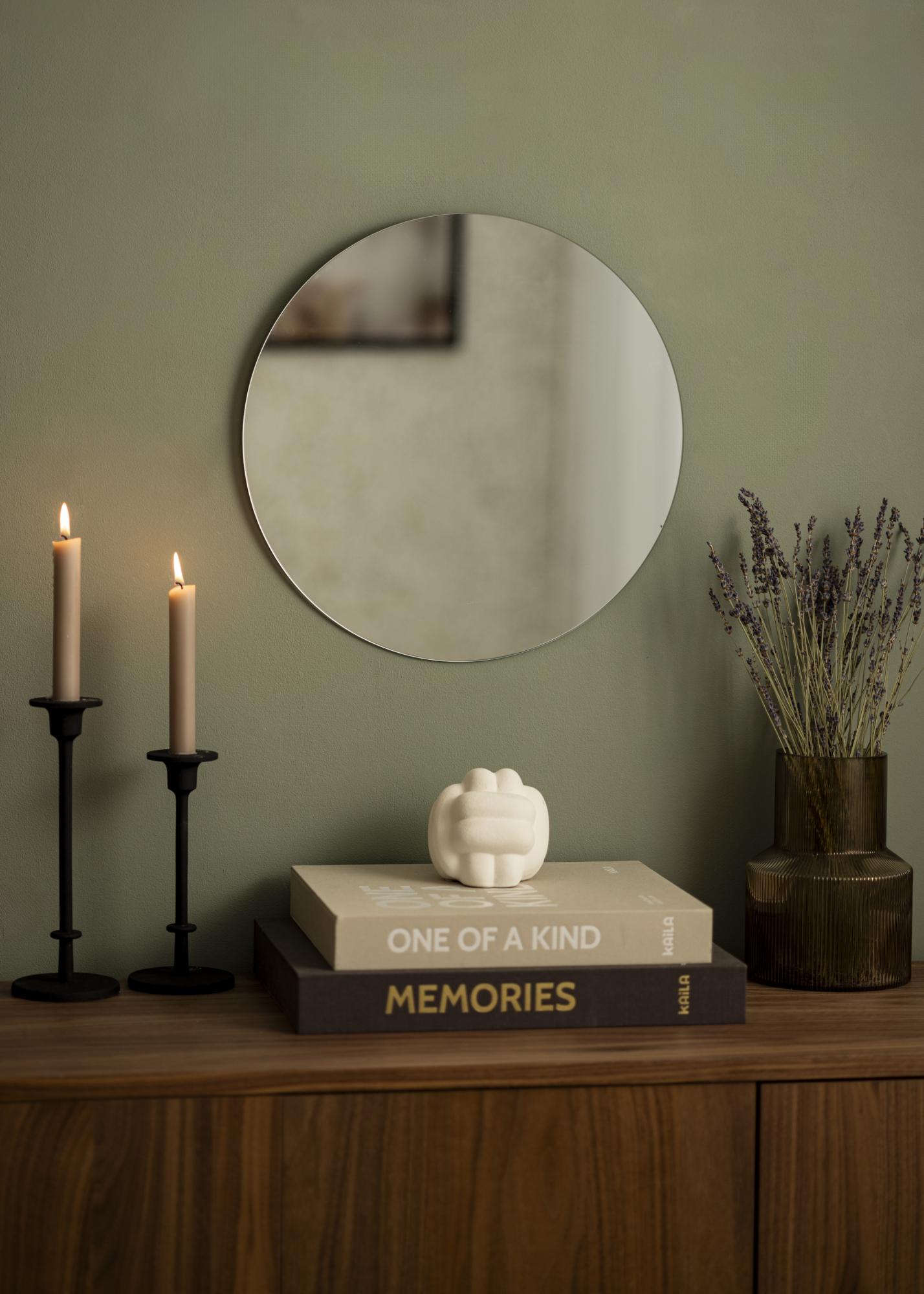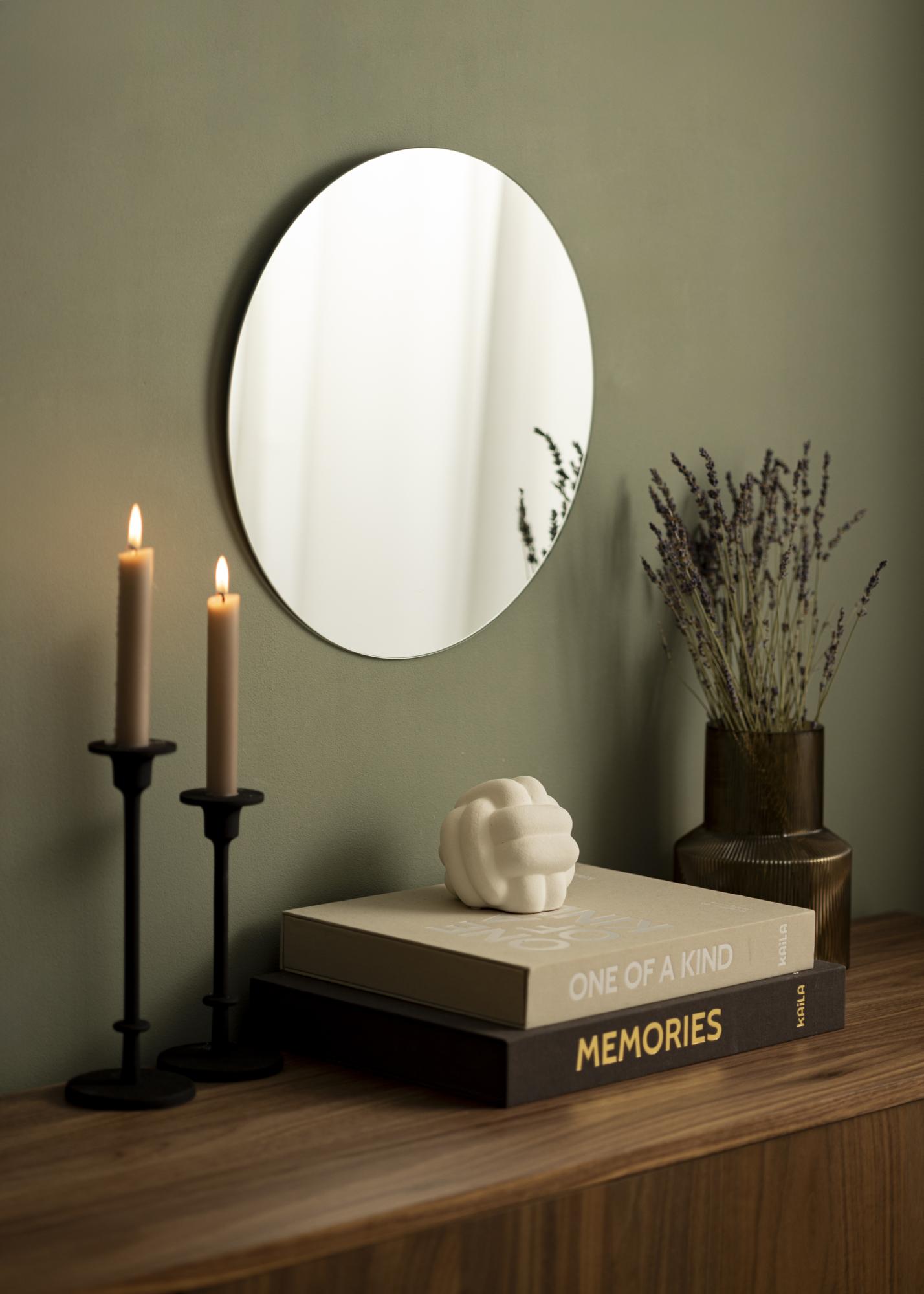 40 cm Ø round mirror that is part of a series of round mirrors from KAILA. Available in a total of 13 sizes so that you can find the size that fits perfectly in your room. The mirror is extremely thin and sleek and suits all types of rooms and interior styles.