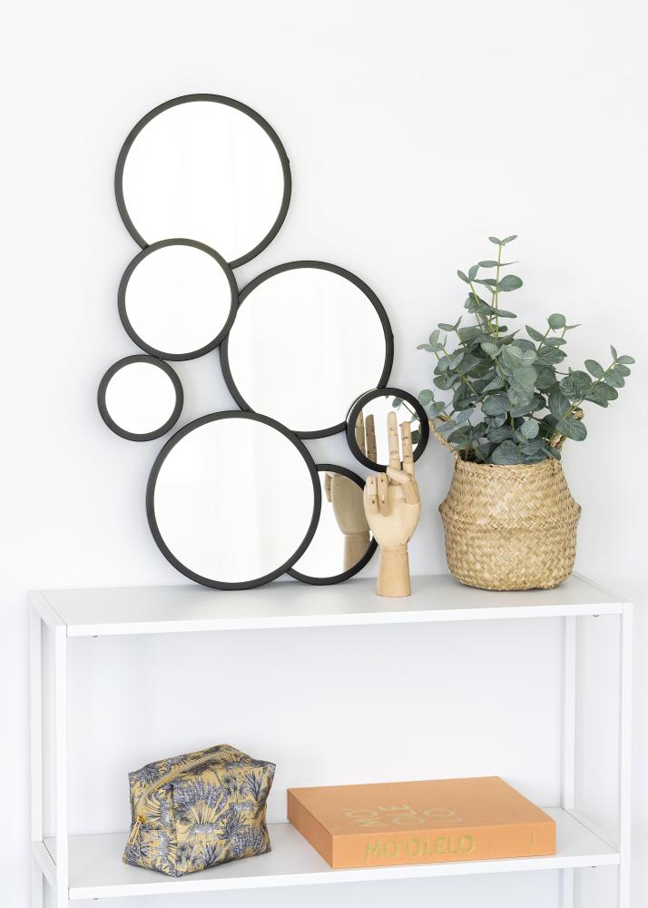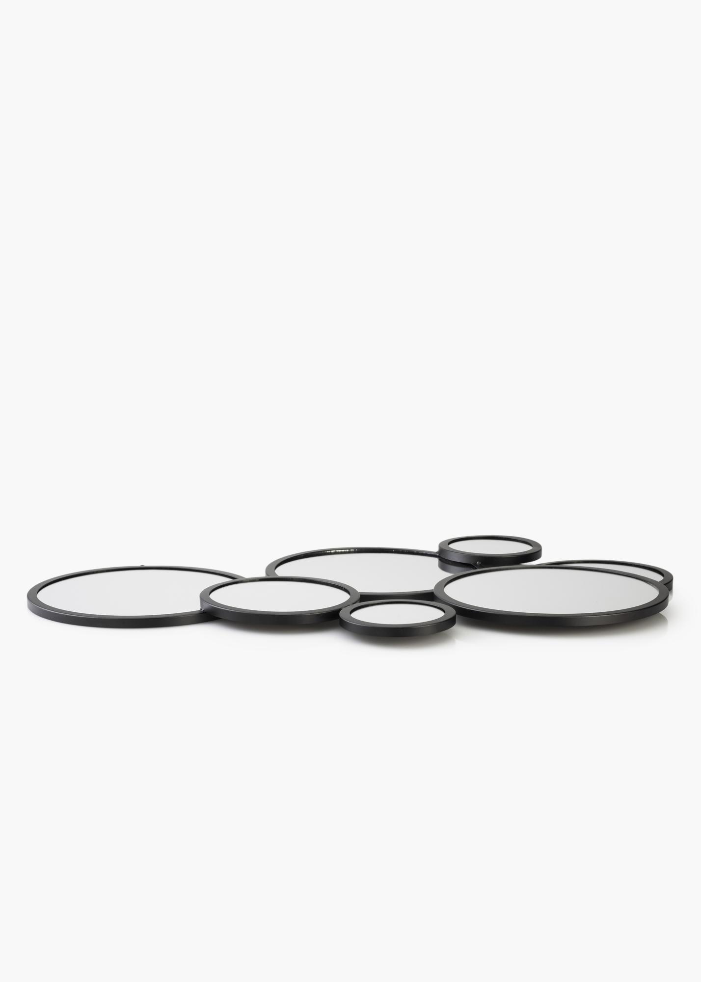 Bubbles is a beautiful mirror with unique design, comprising lots of small, circular mirrors combined in one. This mirror measures 72x43 cm, and has a fashionable black colour. It comes with wall fixings for hanging up, but can also be leaned against the wall. This mirror is made from metal.