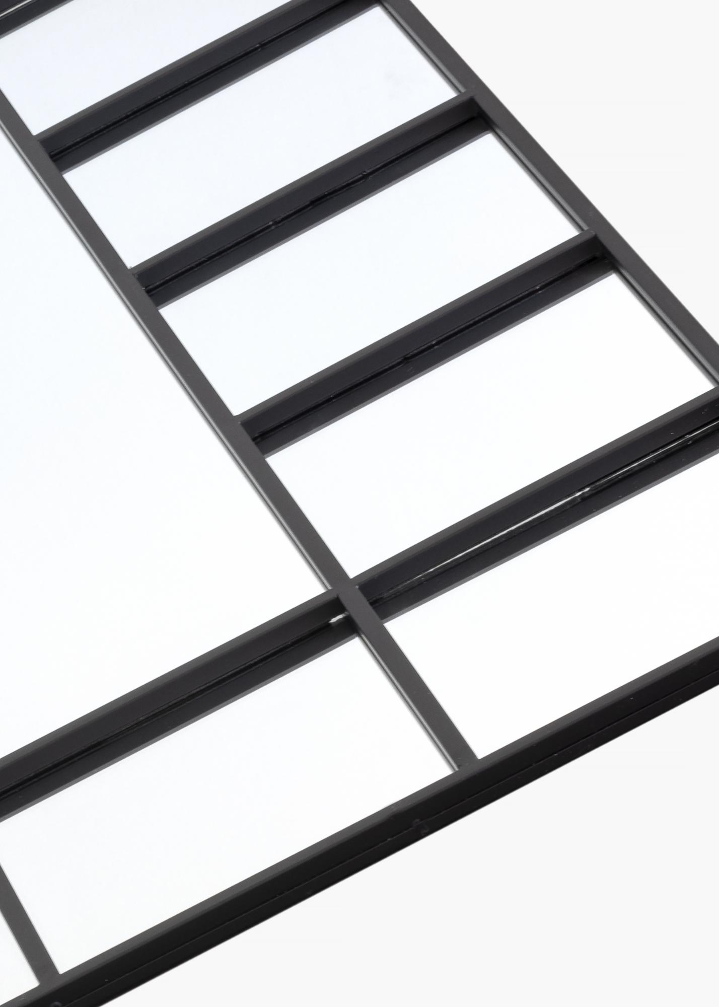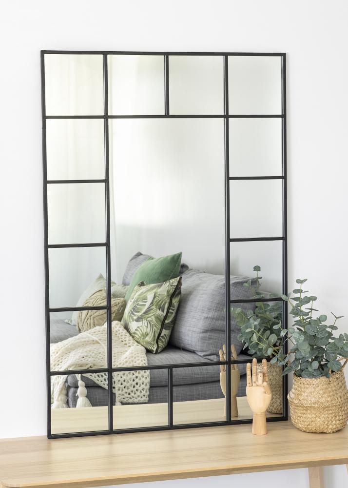 This attractive mirror from KAILA has a design that looks like a beautiful window. The mirror contains several squares that give an attractive framing to the largest mirror in the middle. These squares are themselves framed by thin, black metal lines, giving the mirror a somewhat industrial yet also elegant look. Wall fixings are included for mounting this mirror on the wall, but it also looks good when simply leant against the wall. This mirror measures 80x120 cm.