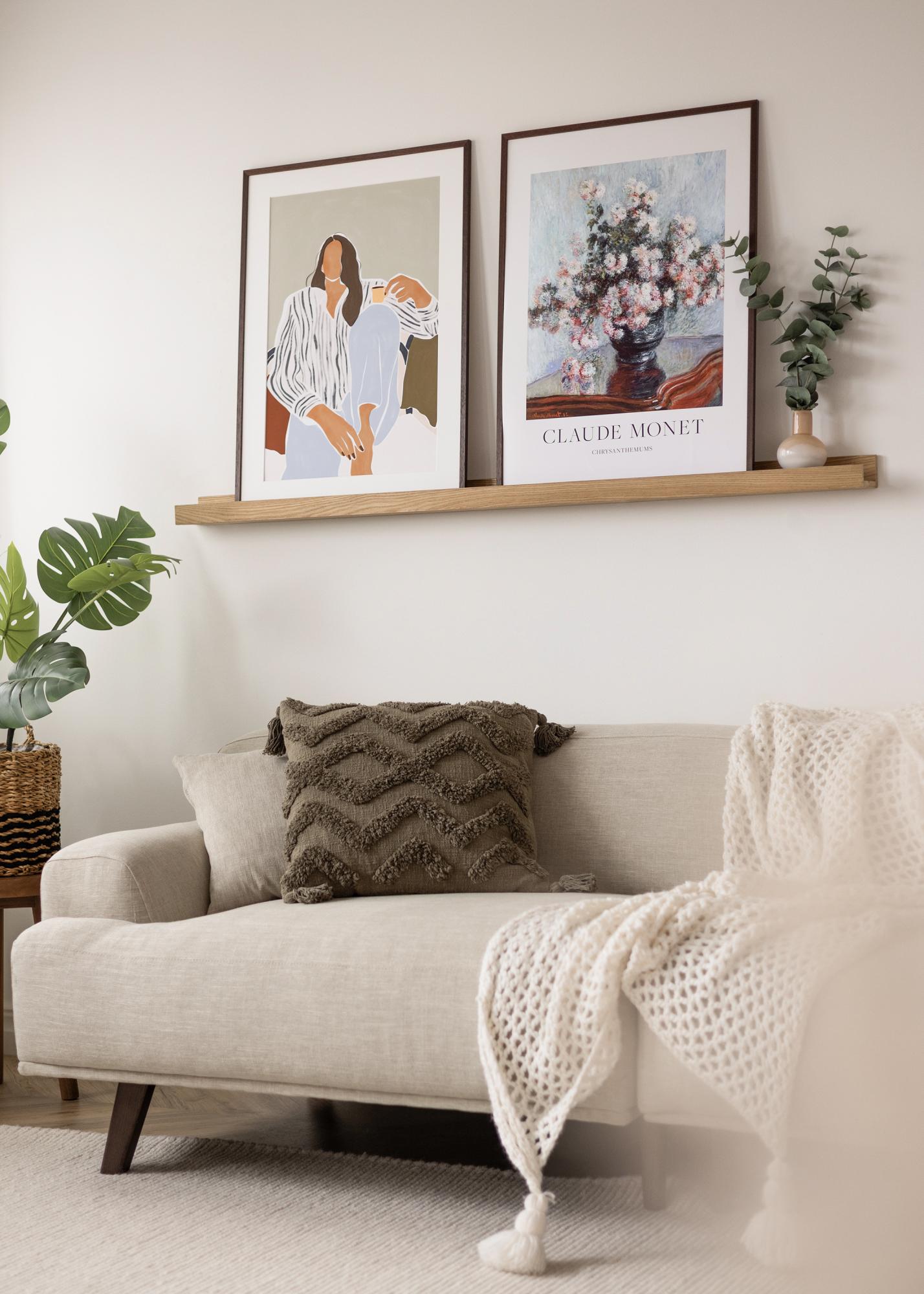 With a practical photo shelf, you showcase your pictures in an elegant way and also get excellent opportunities to vary your wall art. This photo shelf is made of solid oak and has a stylish design with simple, straight lines. The shelf itself has a milled groove that provides support for your pictures and gives them a nice angle as they lean against the wall. The photo shelf is available in several different lengths, of which this variant has a length of 140 cm. The photo shelf also has pre-drilled holes, and to make it all a bit easier, suitable screws and plugs are included.