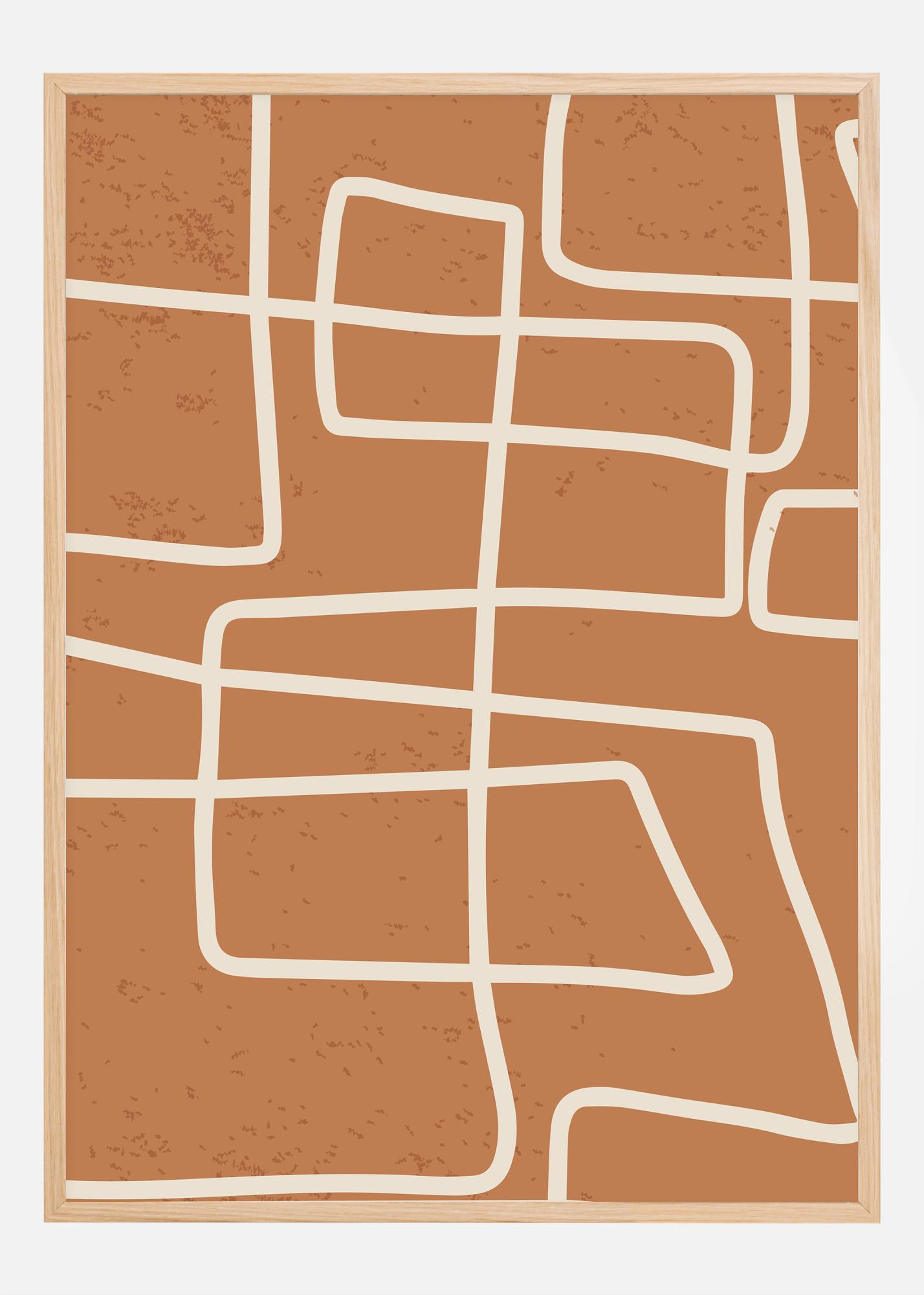 This minimalist and stylish poster presents a network of clean lines forming a kind of abstract map or a cubist landscape. The beige lines cut through a warm terracotta-colored background, creating a sense of order and structure against a softly textured canvas. This is a print that is perfect for anyone who appreciates modern design and the warmer color spectrum in their home or office.