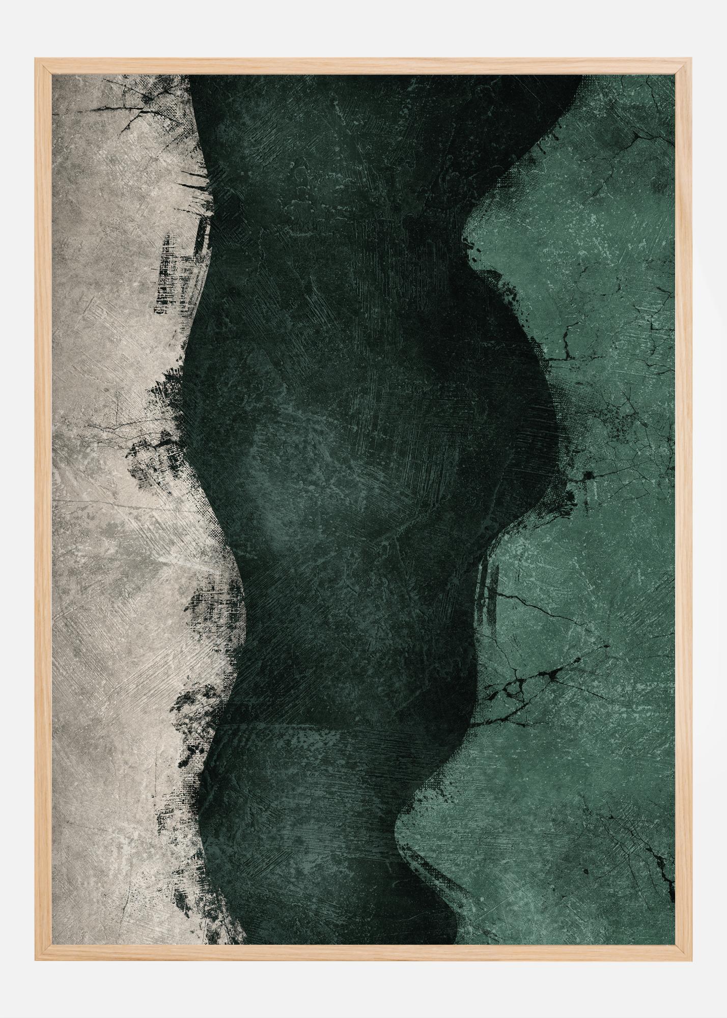 The poster's texture and color choices create an atmosphere of mystique and unknown depths. The bold, organic shapes combine with a raw and irregular feel, giving the impression of a natural process or a geological formation. This artwork could be a metaphor for different elements in coexistence or conflict, a perfect image to inspire conversation and reflection. This print is an excellent choice for a home or office where one wants to introduce a contemporary style with a sense of nature's relentless power and beauty.