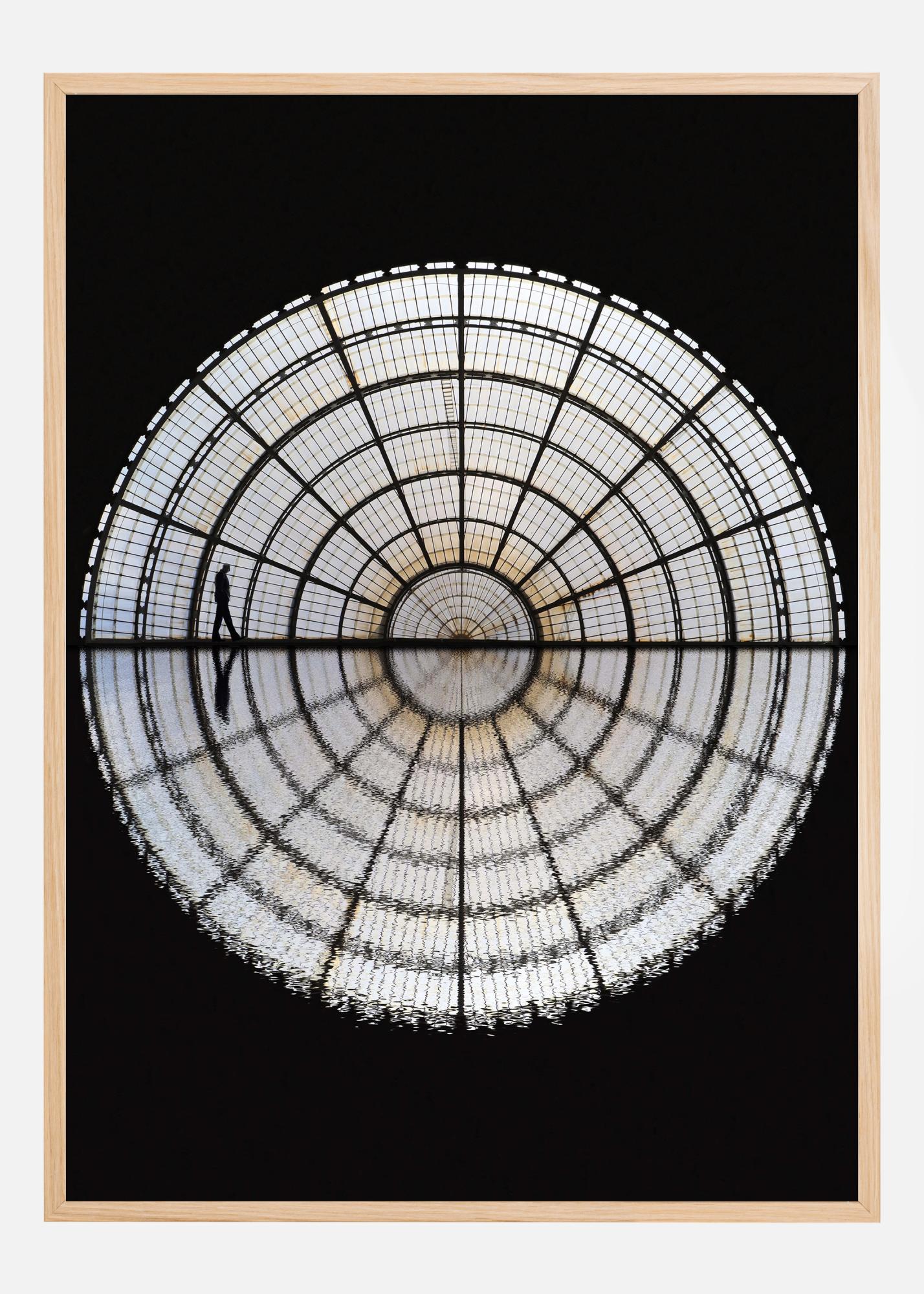 This artistic poster titled "Midnight Walker" captures a solitary figure walking under an impressive dome of bright mesh, creating a sense of both grandeur and isolation. The visual contrast between the dark night and the glowing mesh brings the subject to life, allowing the viewer to feel the silent tranquility of the solitary walk.