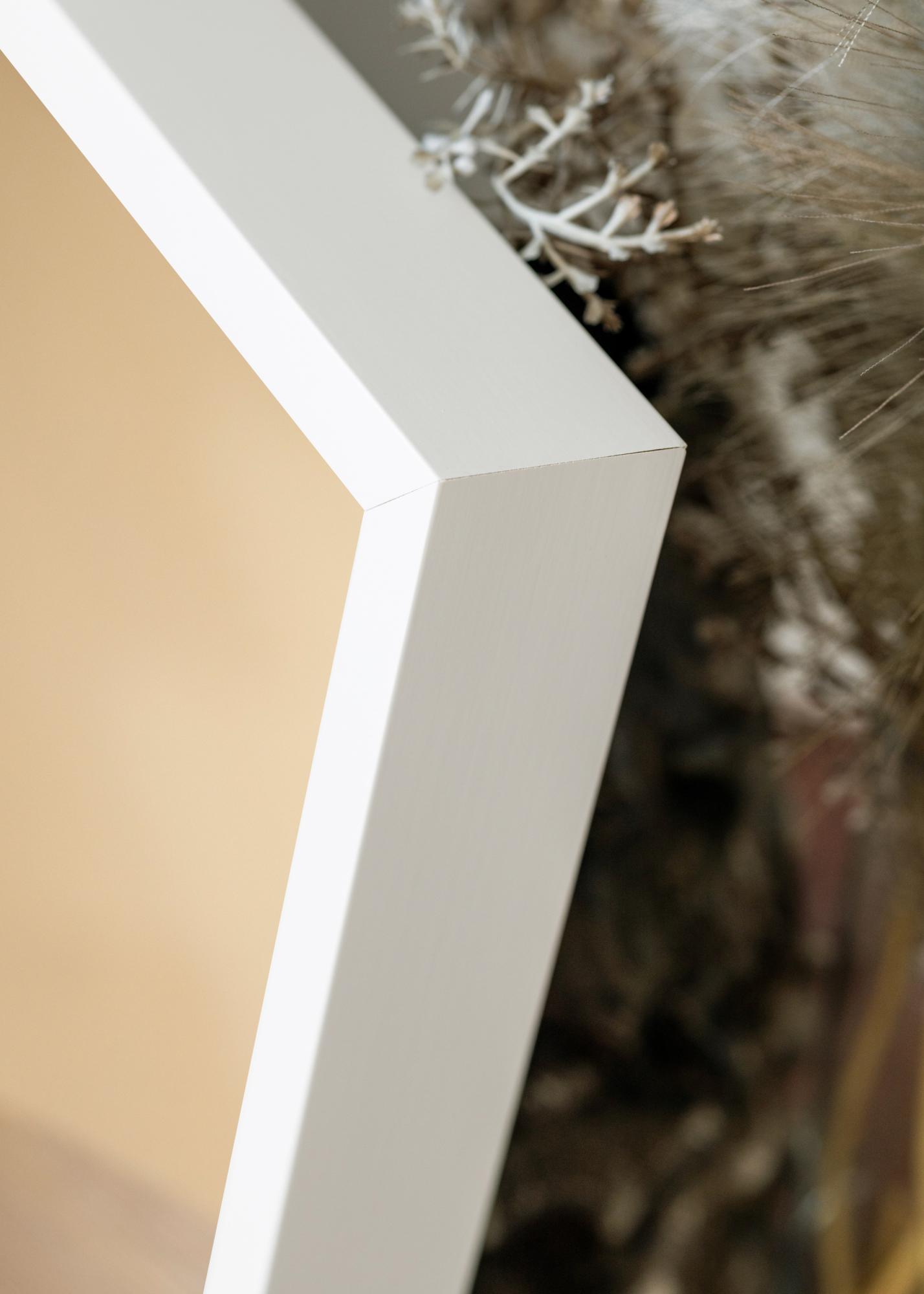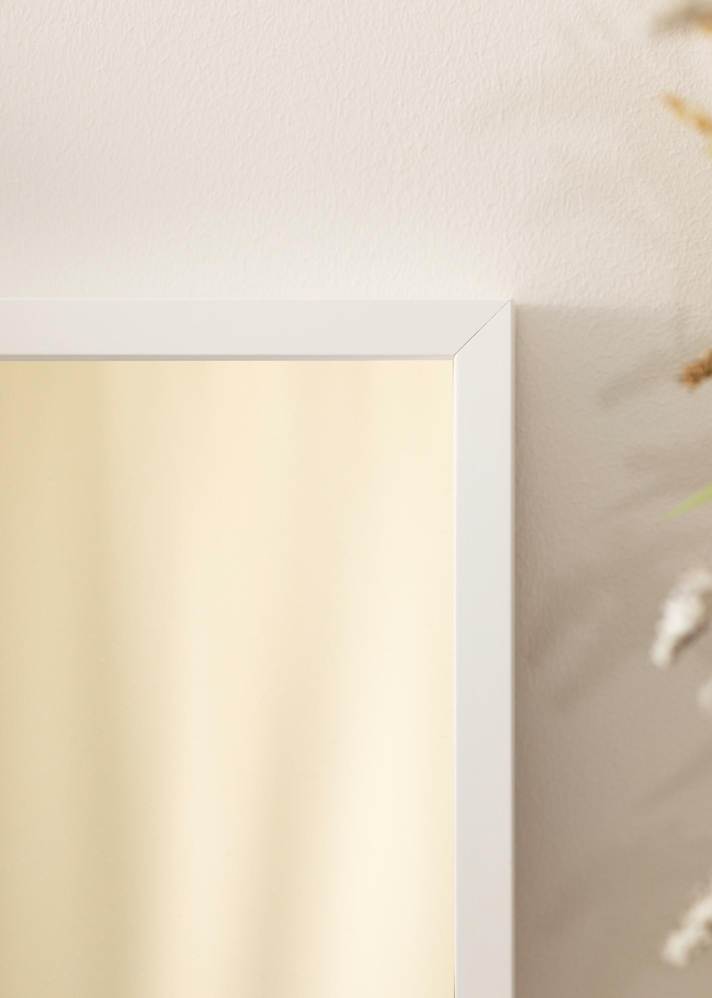 The frame of Mirror Balder White is 20 mm wide and made of pine, providing a stable and durable construction. The depth of the mirror is 45 mm, making it feel solid without taking up too much space. The narrow frame strip contributes to a minimalist design that allows the mirror glass to be the focal point.