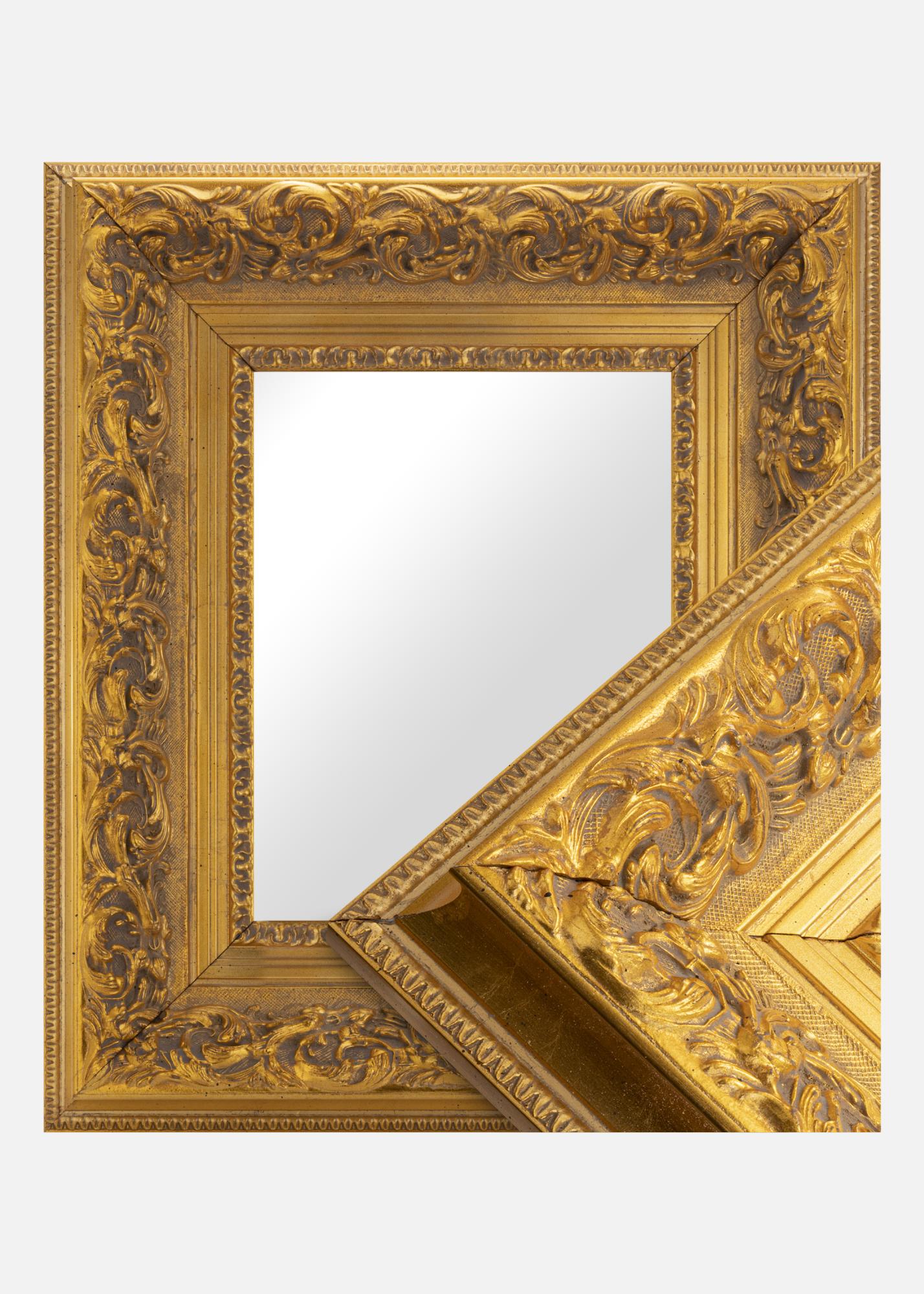 Mirror Birmingham Gold is a custom-made mirror crafted by us, giving you the opportunity to get it in precisely the dimensions you desire. With its deep gold tone and classic baroque design, this mirror becomes a striking detail in your home. The 152 mm wide frame is adorned with intricate ornaments and sculpted leaf patterns, creating an elegant and timeless expression.