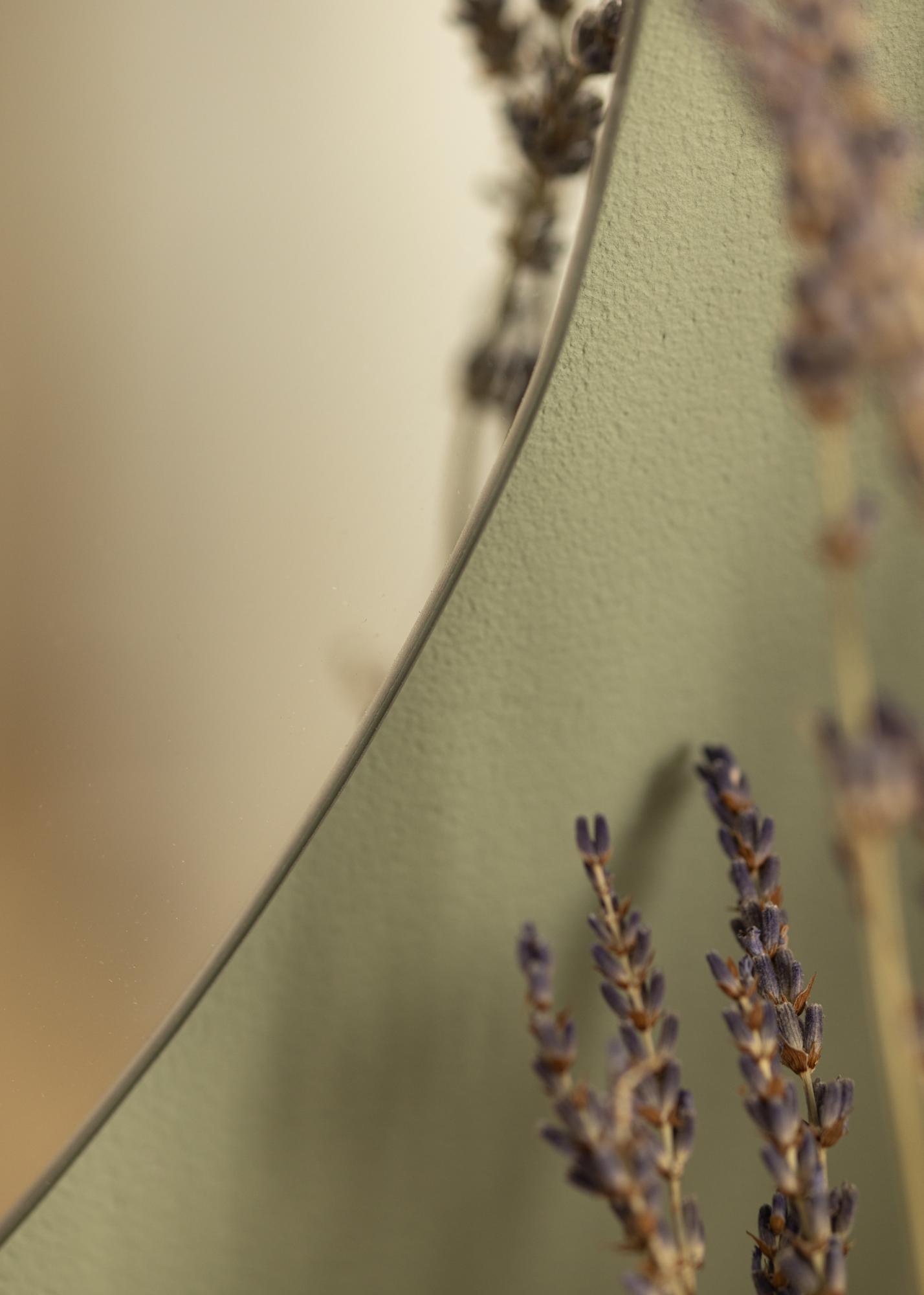 The mirror has a rounded, egg-shaped contour with a flat bottom, which creates a soft and modern aesthetic. Its unique shape makes it stand out from the crowd and become an interesting conversation starter. It is not just a mirror, but also a piece of art that enhances your home.