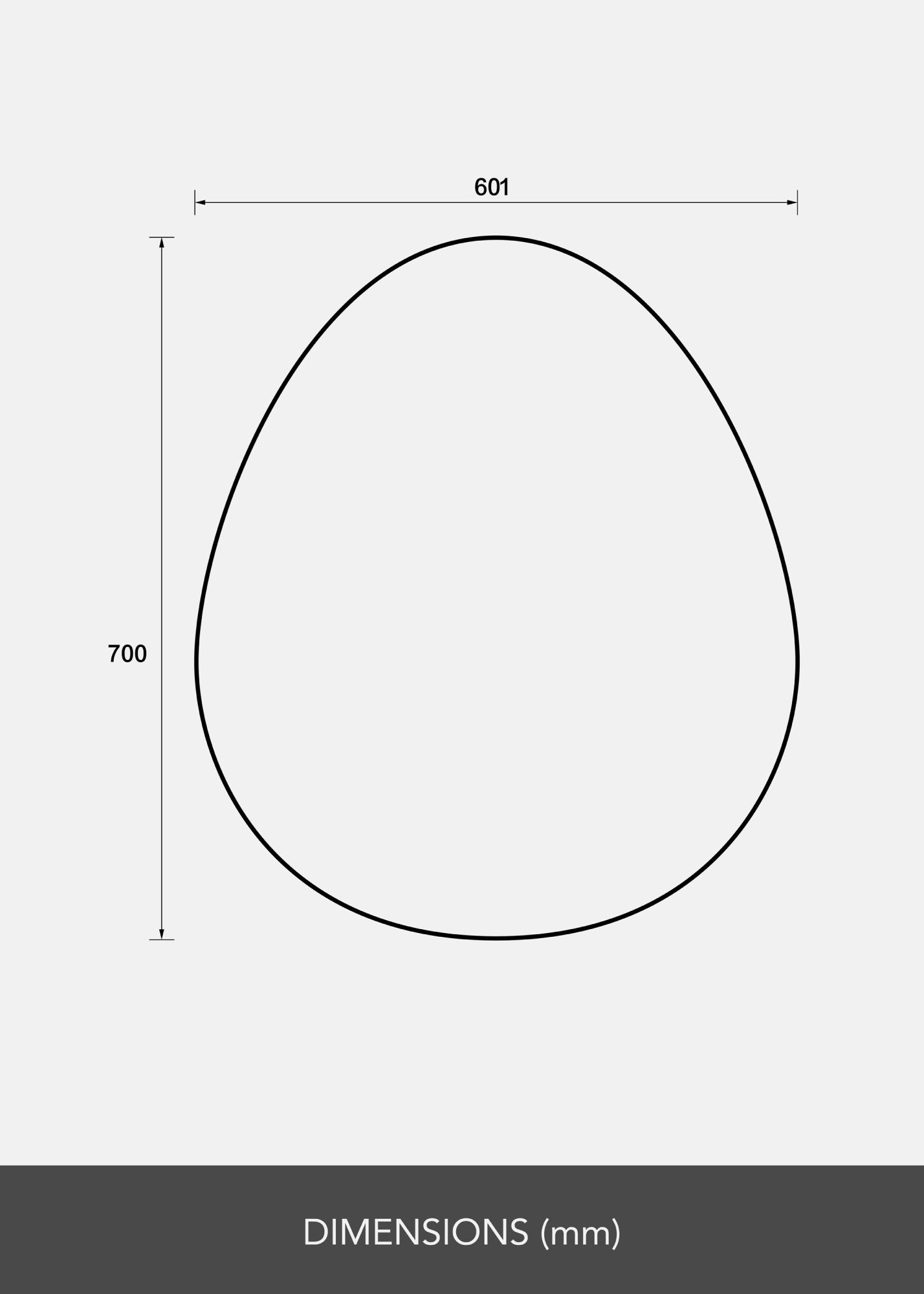 Discover the unique charm of our egg-shaped mirror, an elegant interior detail that combines function with a modern design. With its soft lines and rounded contours, this mirror adds a feeling of lightness and style to any room. The measurements of 60x70 cm make it a practical and decorative wall accessory that is perfect for the hallway, bedroom, or bathroom.
