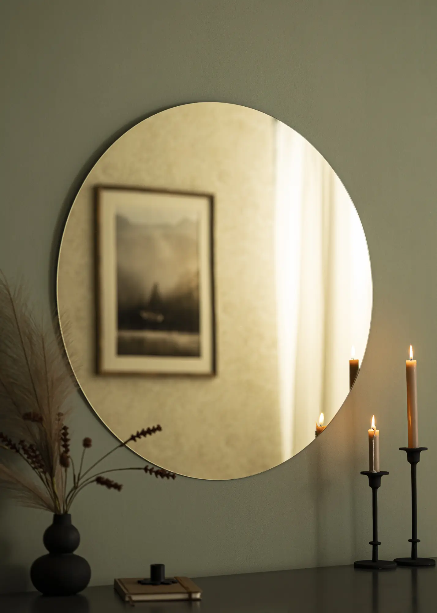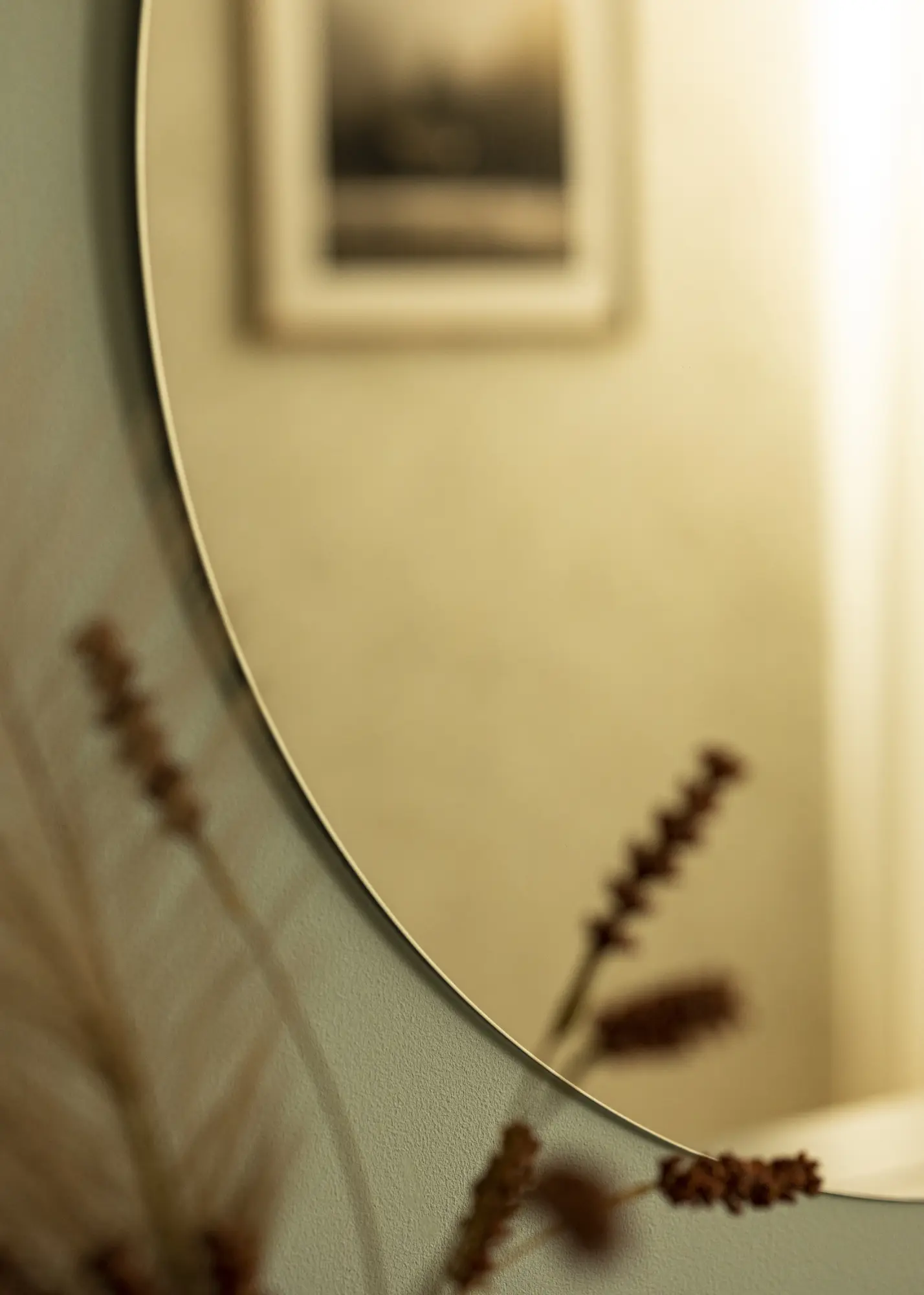 Champagne is the colour of luxury so, if you’re looking for an exclusive mirror, this is the perfect choice. This round wall mirror has thin mirror glass and an elegant frameless design. The mirror measures 80 cm in diameter.