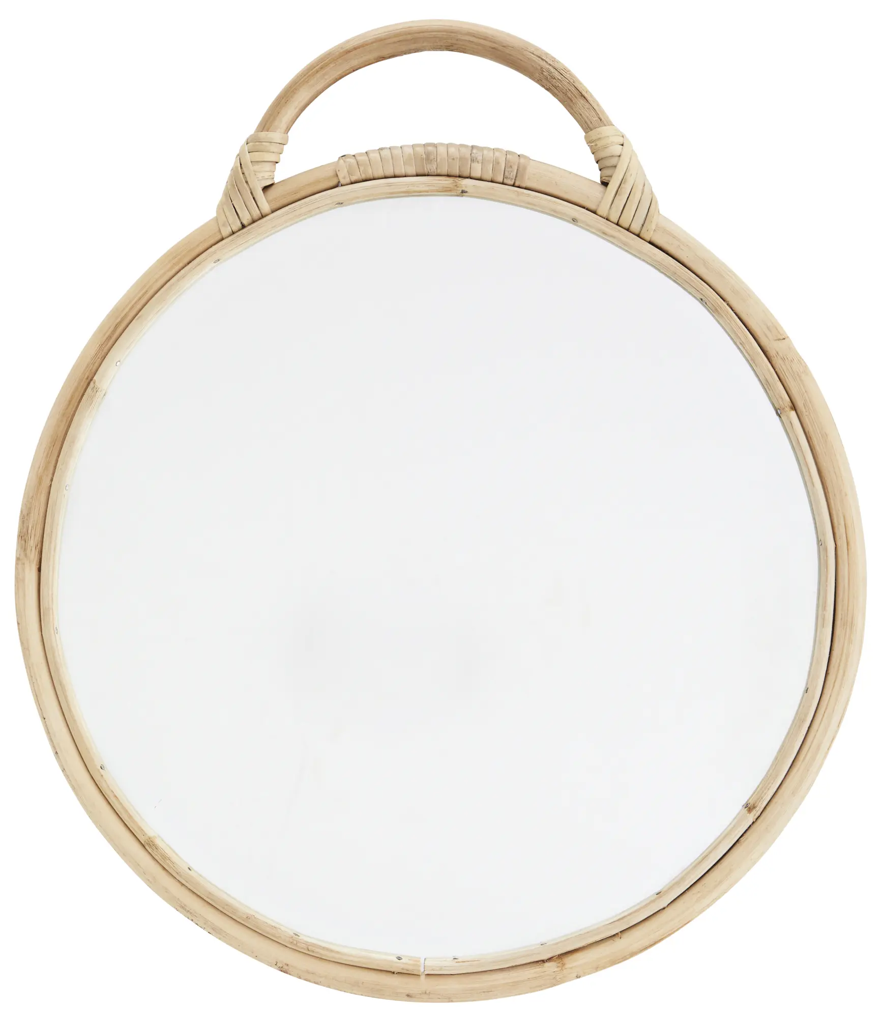 Round mirror from Madam Stoltz, which blends seamlessly with any interior décor. The mirror has an elegant round shape finished with a bamboo frame. The top of the frame has an easy-to-use, stylish loop for fastening to a wall. The wall mirror has a diameter of 38 cm. The mirror is made with natural materials and each item can vary slightly in appearance as a result.
