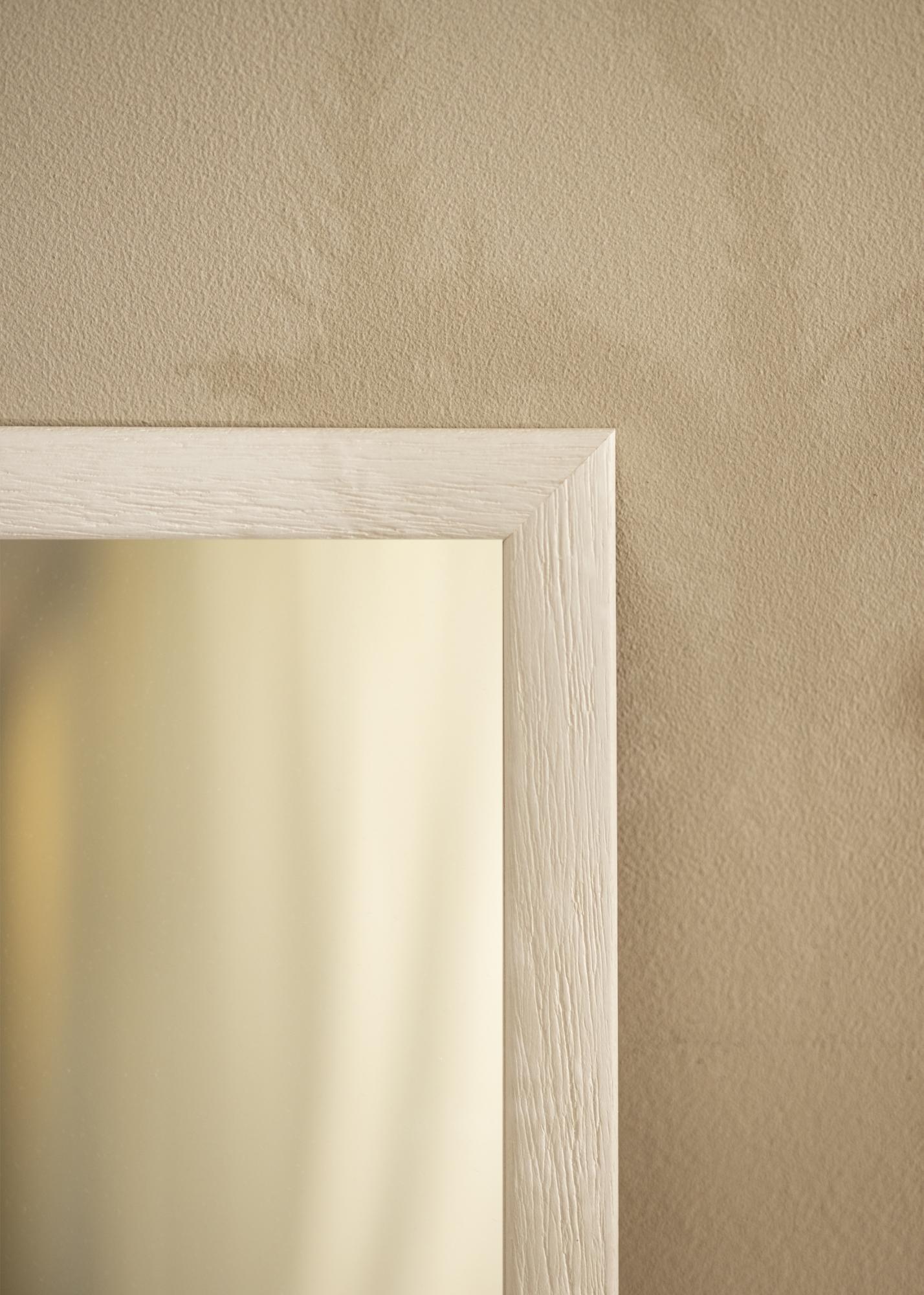 Mirror Cornwall White is a custom-made mirror manufactured by us to suit your needs. With its elegant white color and subtle variations, this mirror offers a soft and natural expression that blends into most environments. The warm off-white shade gives the room a pleasant atmosphere, while the prominent wood structure with distinct grain creates a rustic feel.