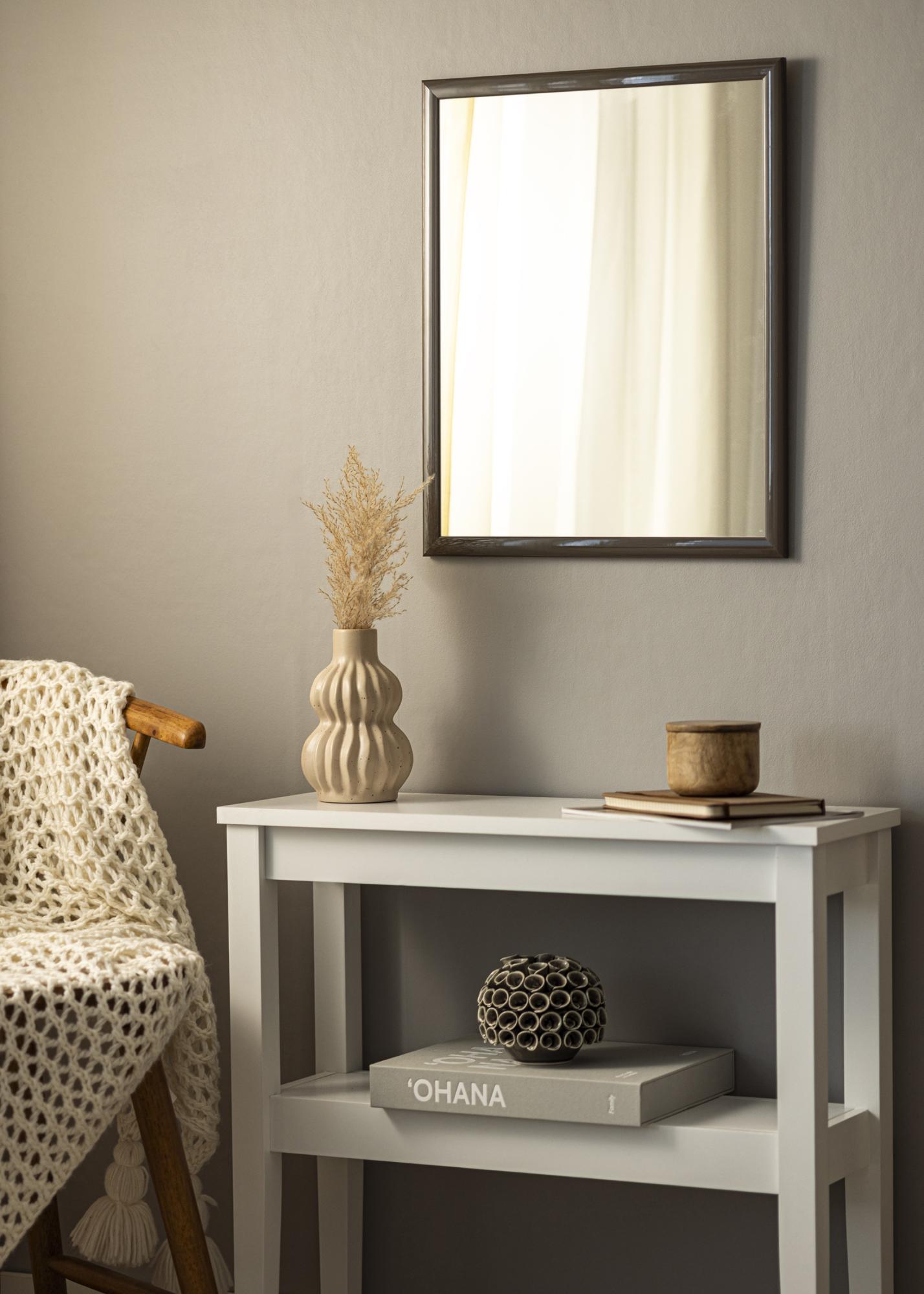 The frame of the mirror is 23 mm wide and made of ayous wood, providing a robust and durable construction. With a depth of 13 mm, the mirror has a discreet profile that blends into most environments without overpowering them. The dark gray shade is both modern and timeless, making the mirror suitable for various interior styles, from minimalist to more traditional.