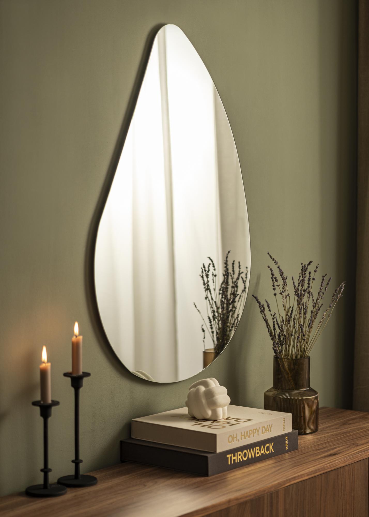 Discover the unique charm of our mirror, combining function and style in an impressive way. Measuring 65x90 cm, this mirror is a perfect accent for both small and large spaces, and its dynamic and organic form adds a modern touch to your decor. The mirror's design elegantly curves upwards, and its clear glass reflects light in a way that makes the room feel larger and more inviting.